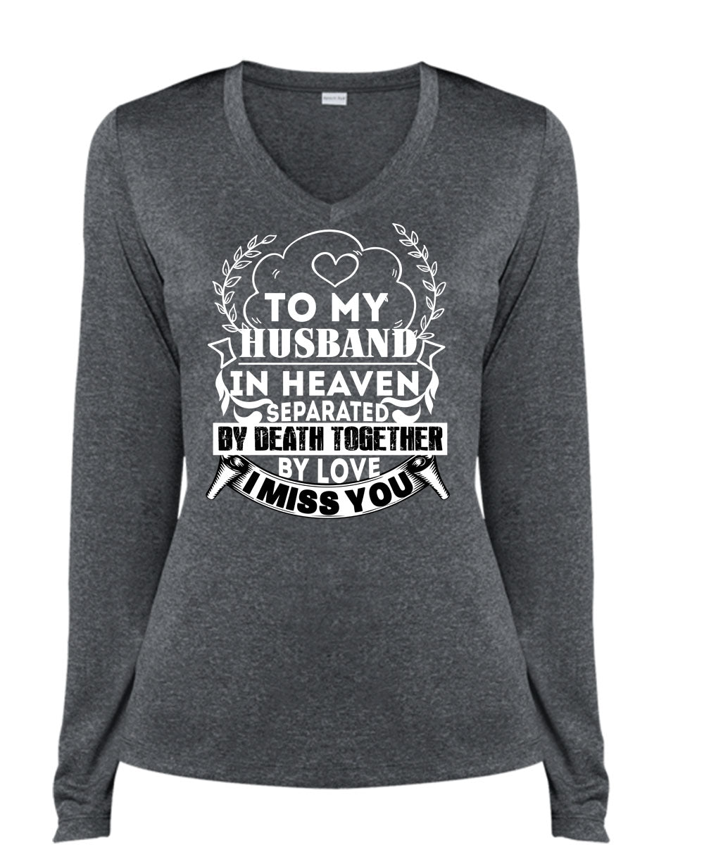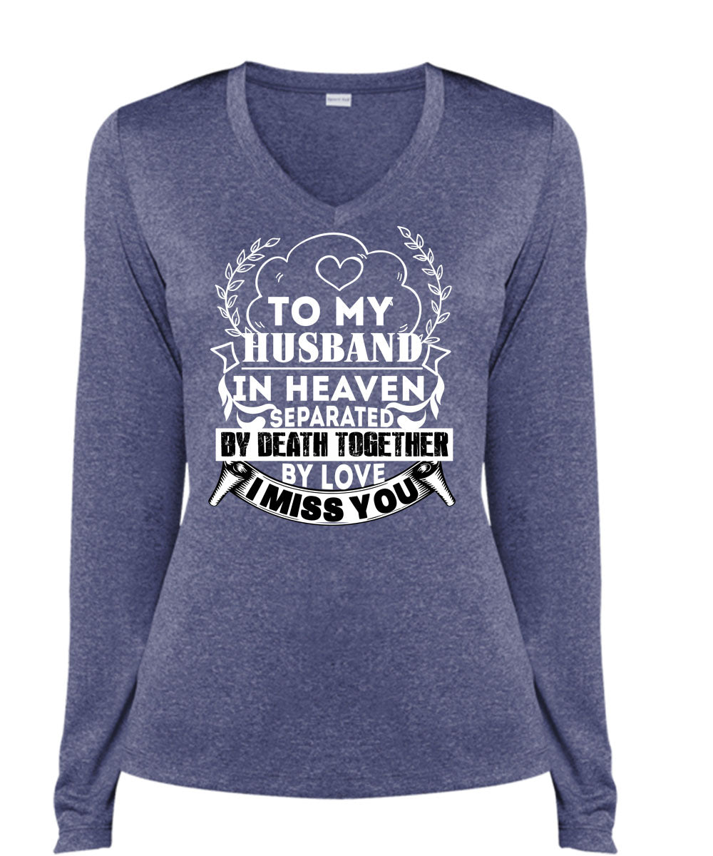 To My Husband In Heaven T Shirt, Death Together By Love T Shirt, Cool Shirt (Ladies LS Heather V-Neck)