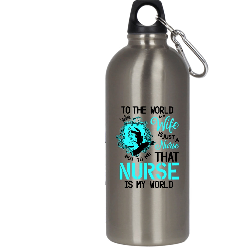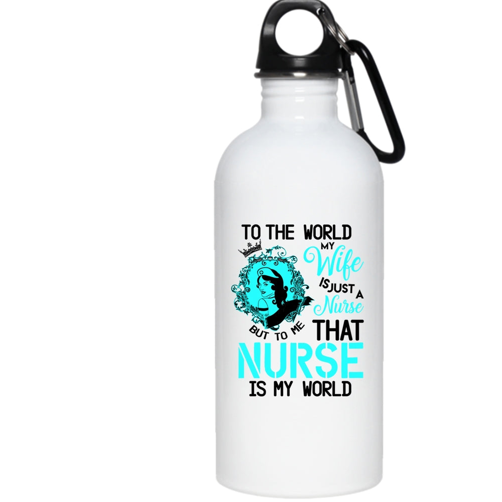 To The World My Wife Is A Nurse 20 oz Stainless Steel Bottle,To Me That Nurse Is My World Outdoor Sports Water Bottle