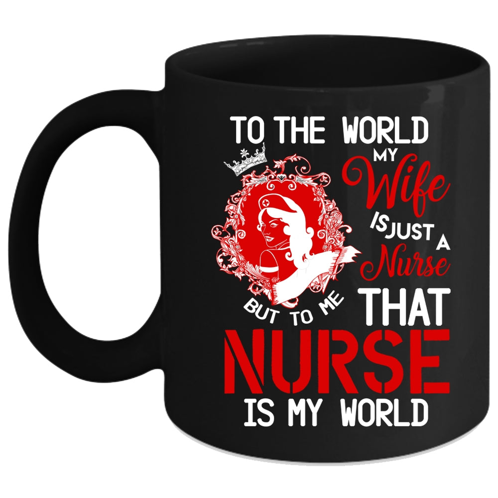 To The World My Wife Is A Nurse Coffee Mug, To Me That Nurse Is My World Coffee Cup