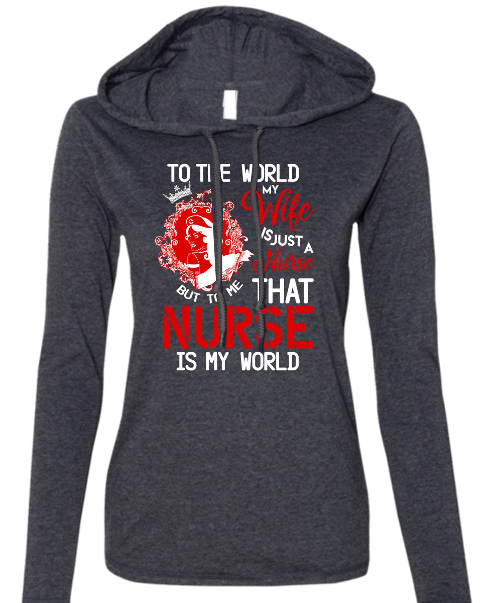 To The World My Wife Is Just A Nurse T Shirt, Being A Nurse T Shirt (Anvil Ladies Ringspun Hooded)