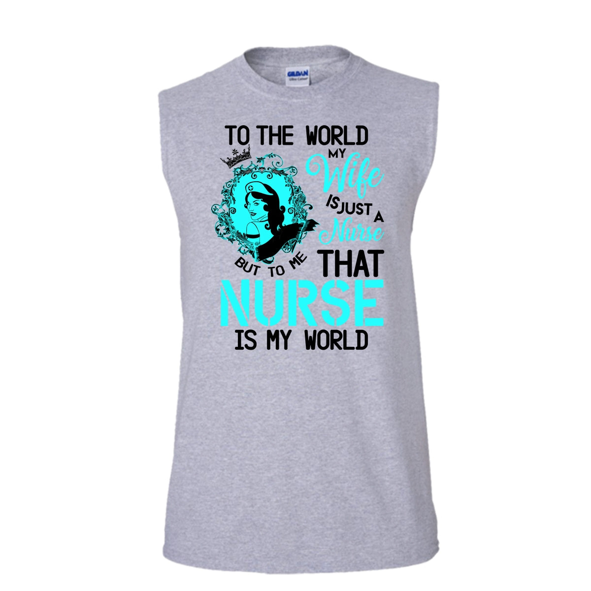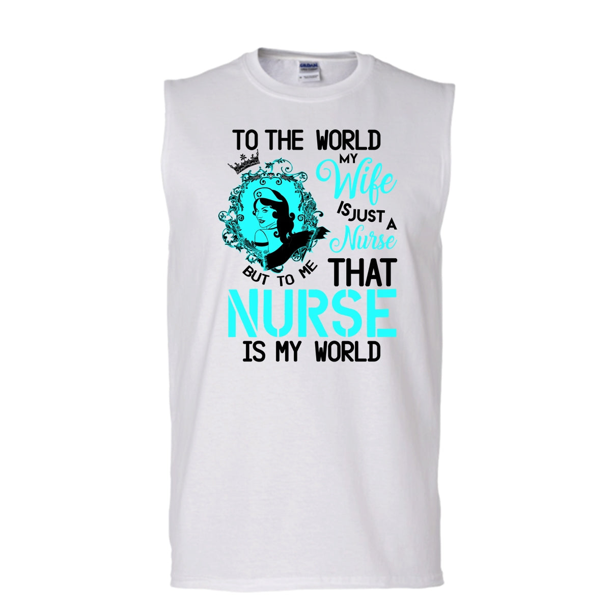 To The World My Wife Just A Nurse T Shirt, Coolest Nurse's Husband T Shirt, Awesome t-shirts (Men's Cotton Sleeveless)