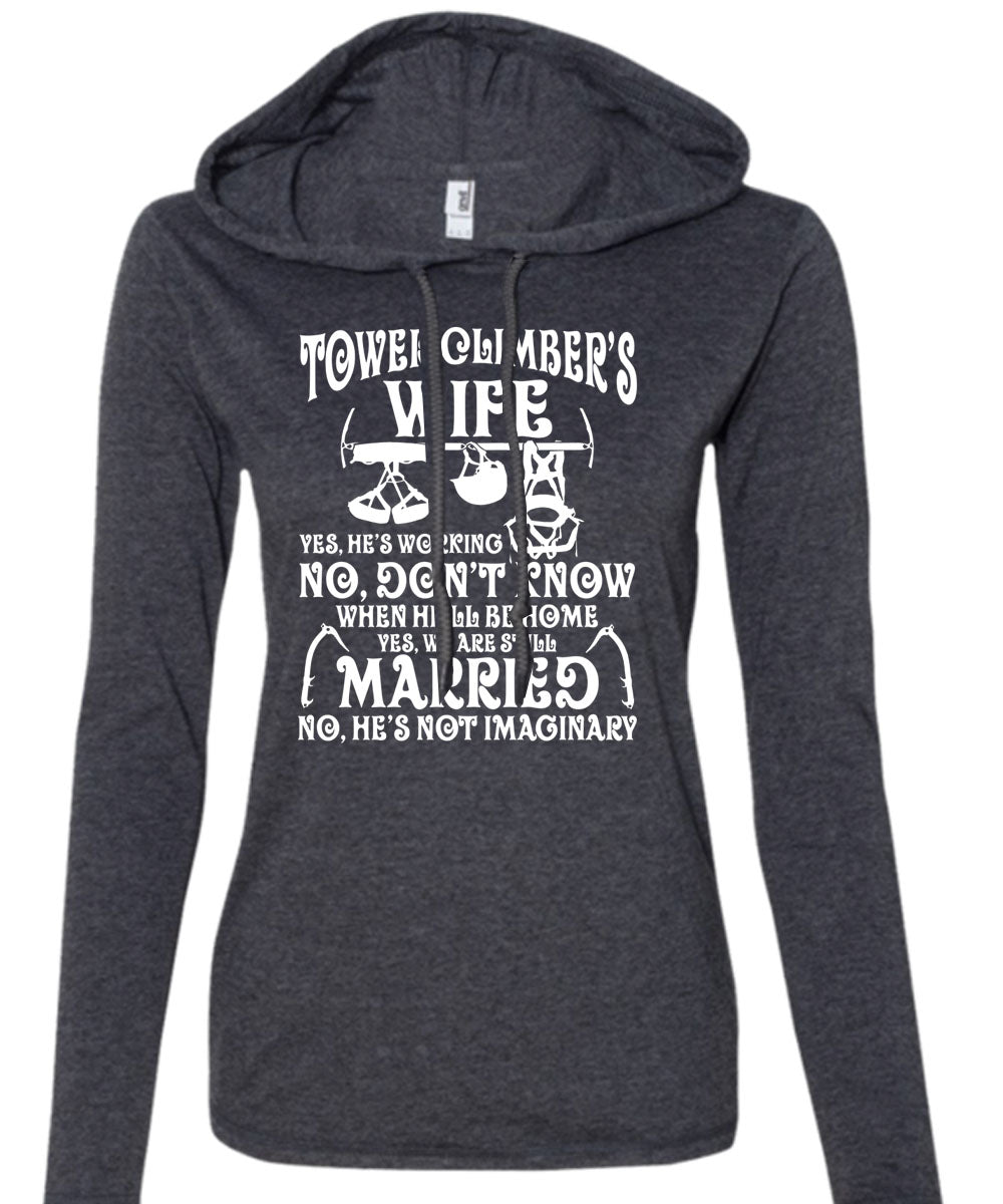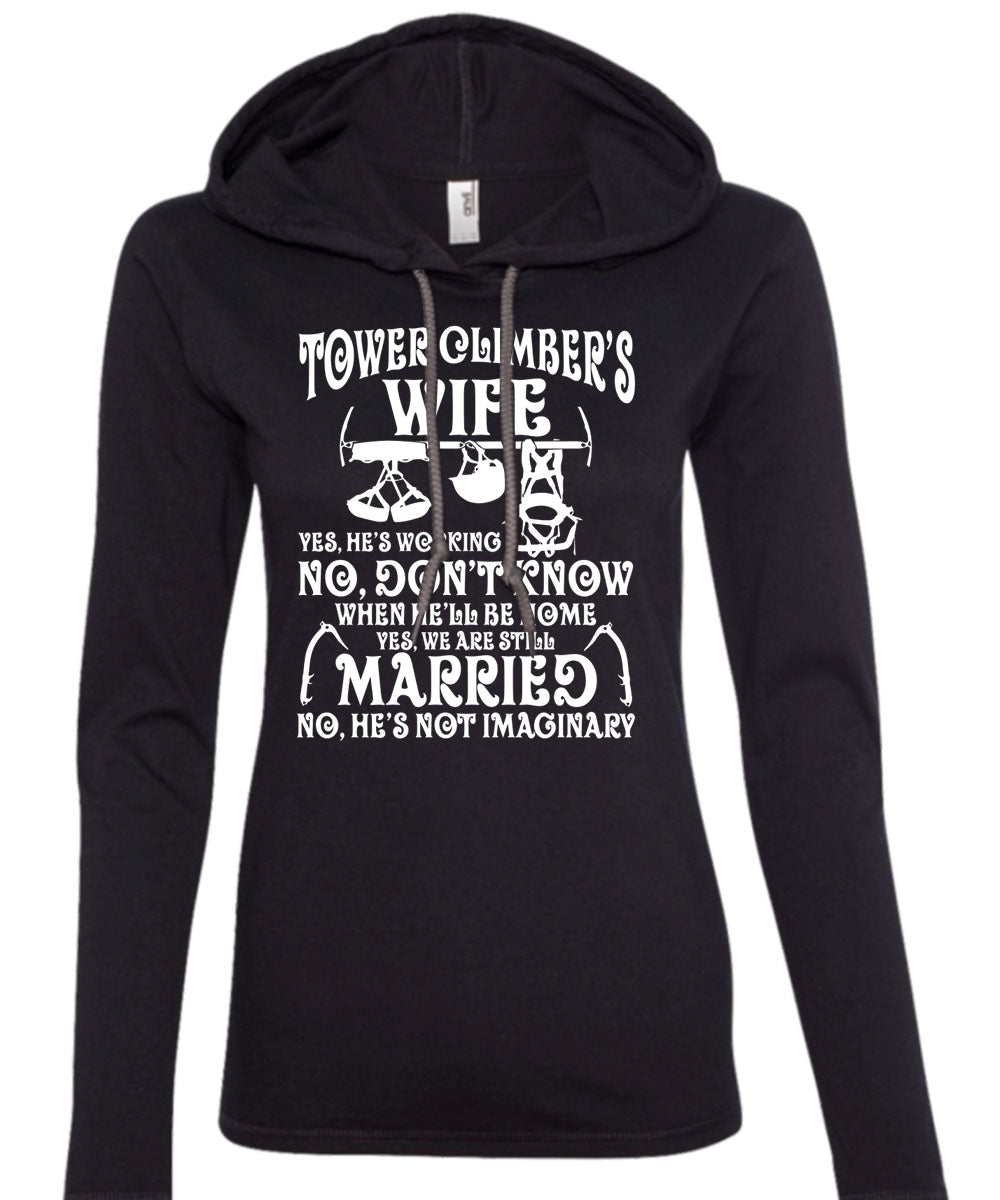 Tower Climber's Wife T Shirt, He's Not Imaginary T Shirt (Anvil Ladies Ringspun Hooded)
