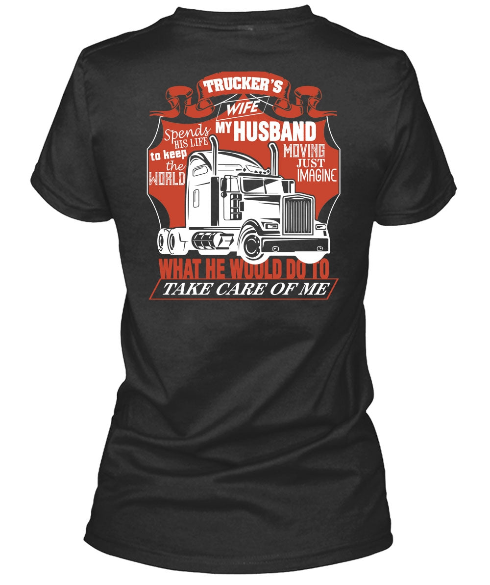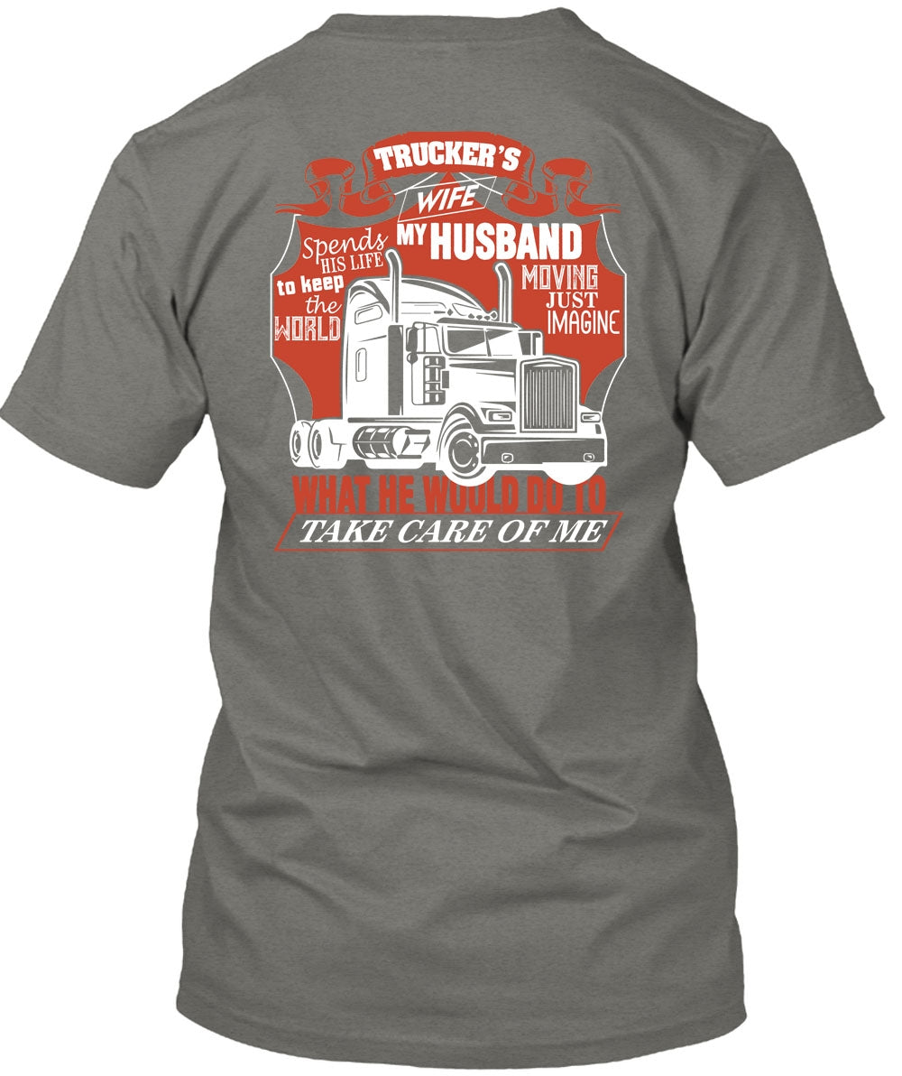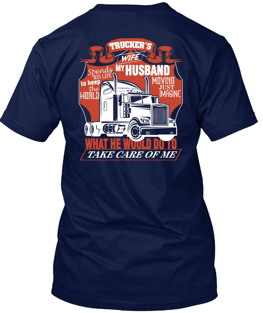 Trucker's Wife Spends My Husband T Shirt, Being A Trucker T Shirt