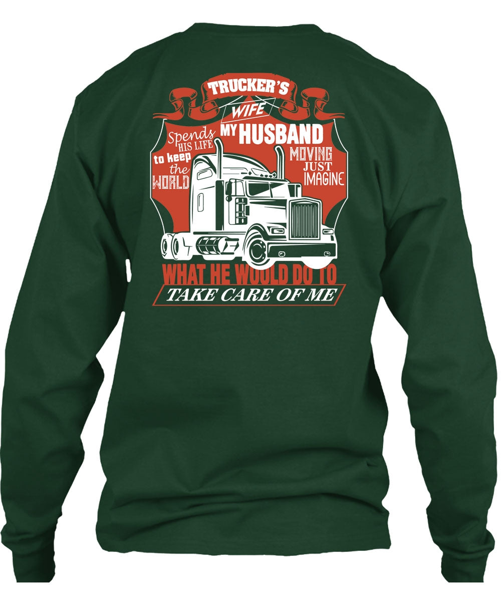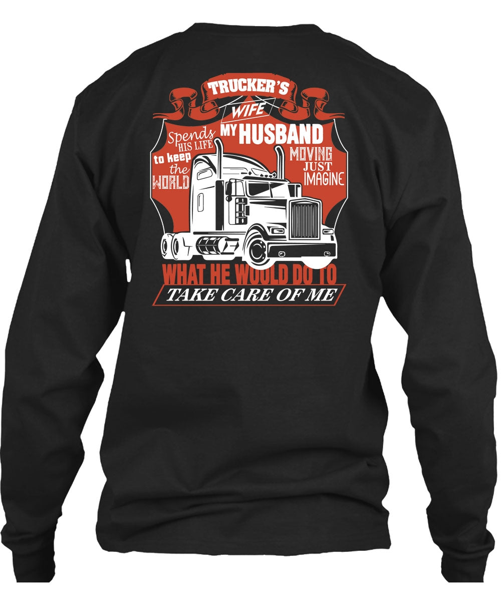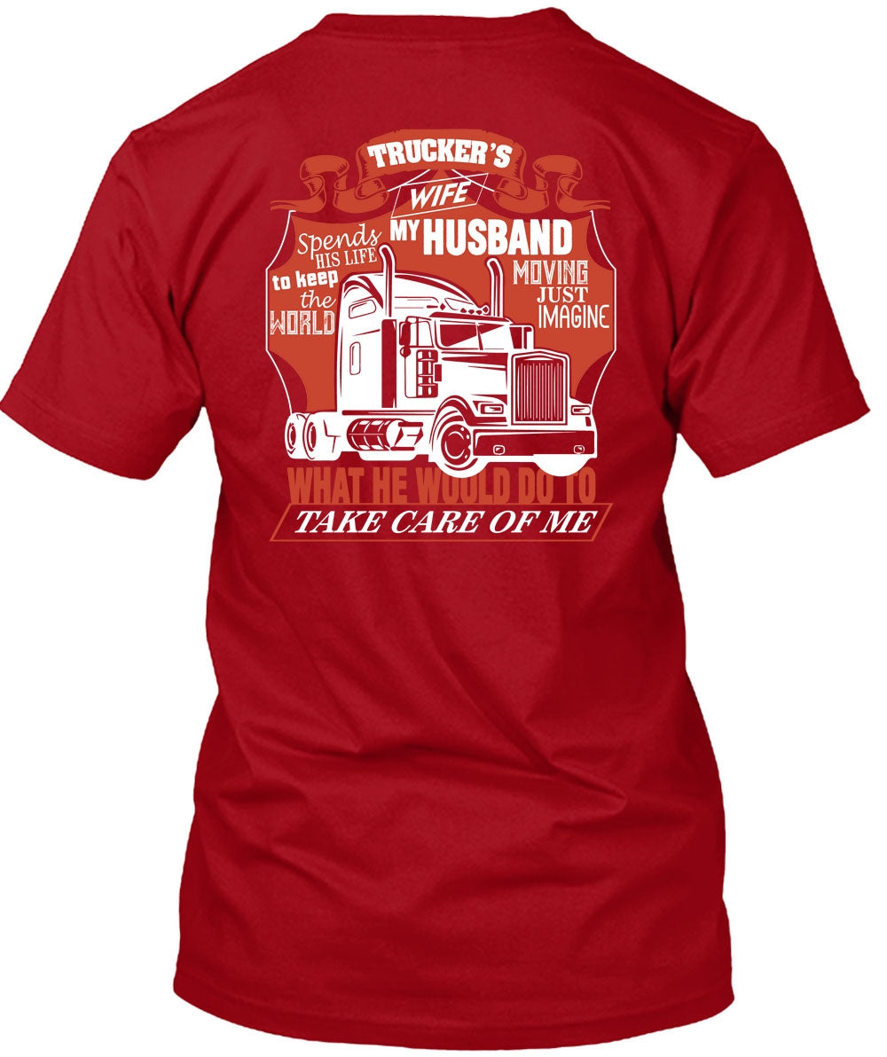 Trucker's Wife Spends My Husband T Shirt, Being A Trucker T Shirt