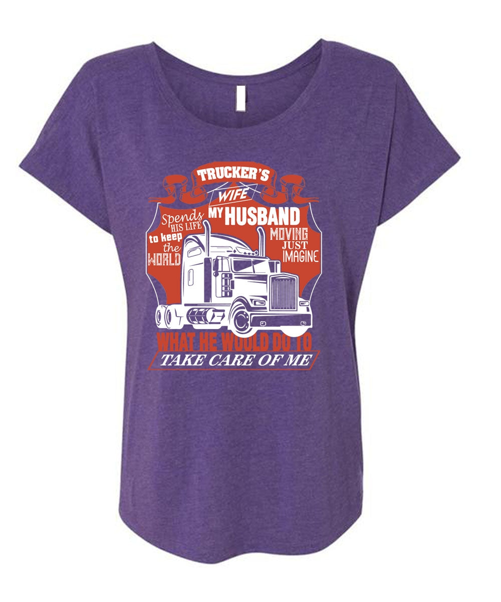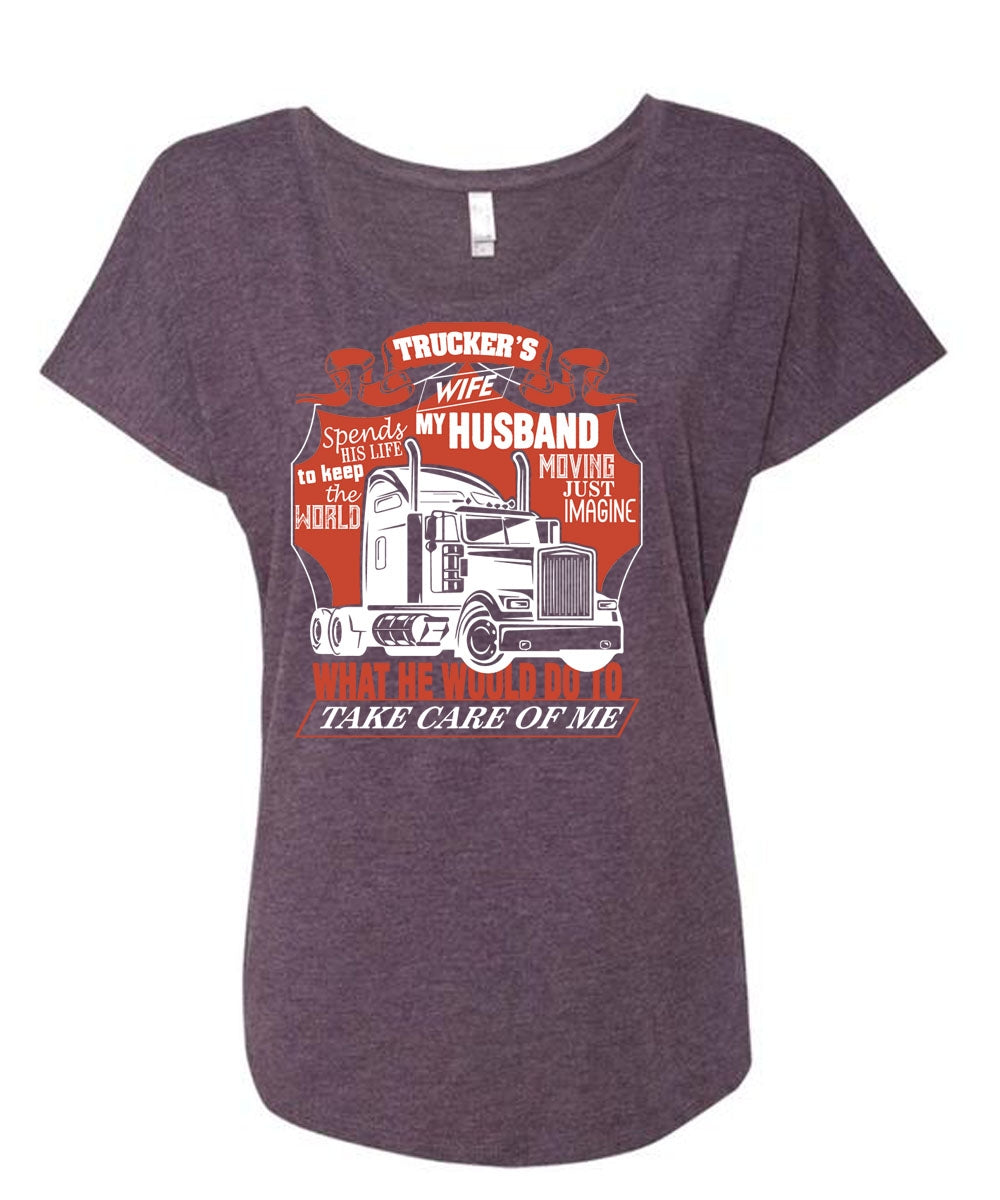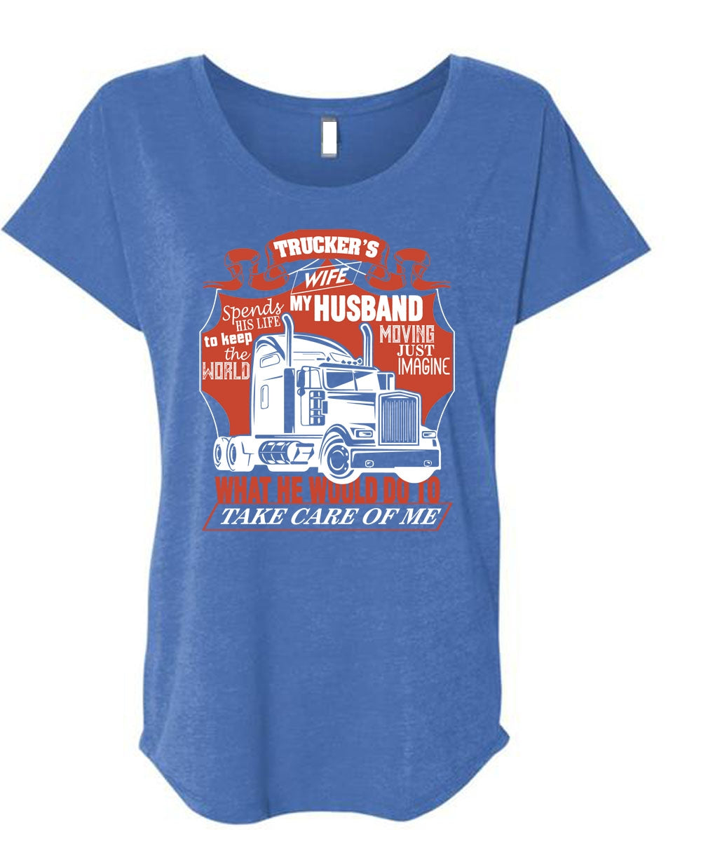 Trucker's Wife Spends My Husband T Shirt, Being A Trucker T Shirt, Cool Shirt (Ladies' Triblend Dolman Sleeve)