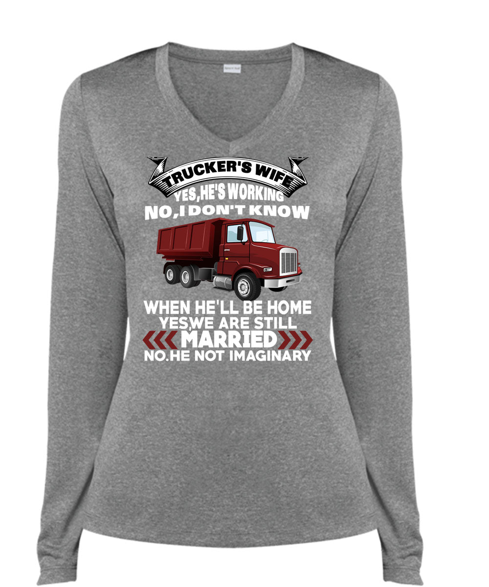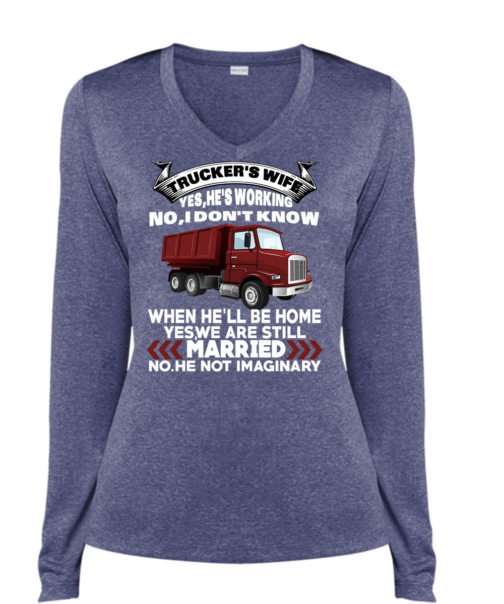 Trucker's Wife T Shirt, Being A Trucker T Shirt, Cool Shirt (Ladies LS Heather V-Neck)
