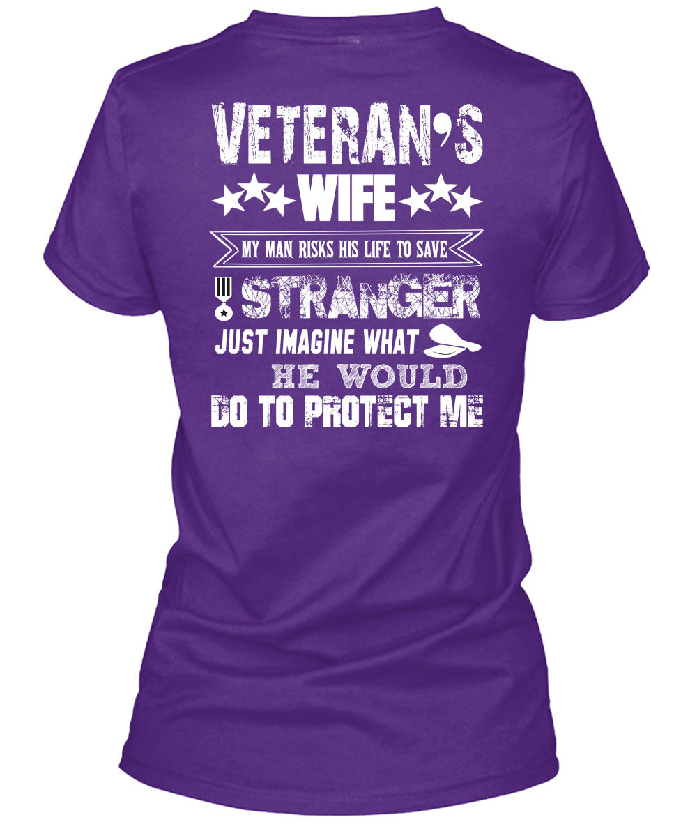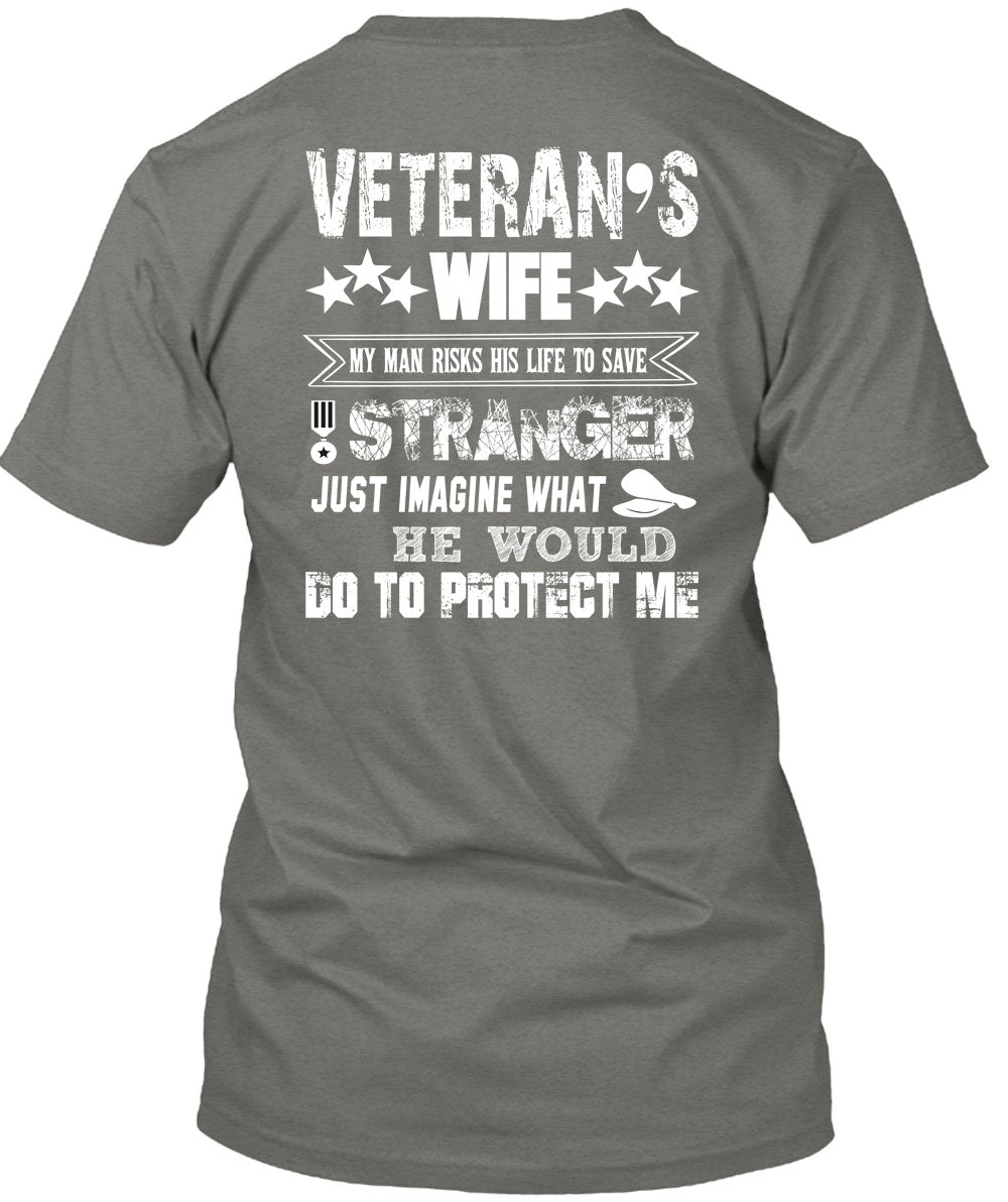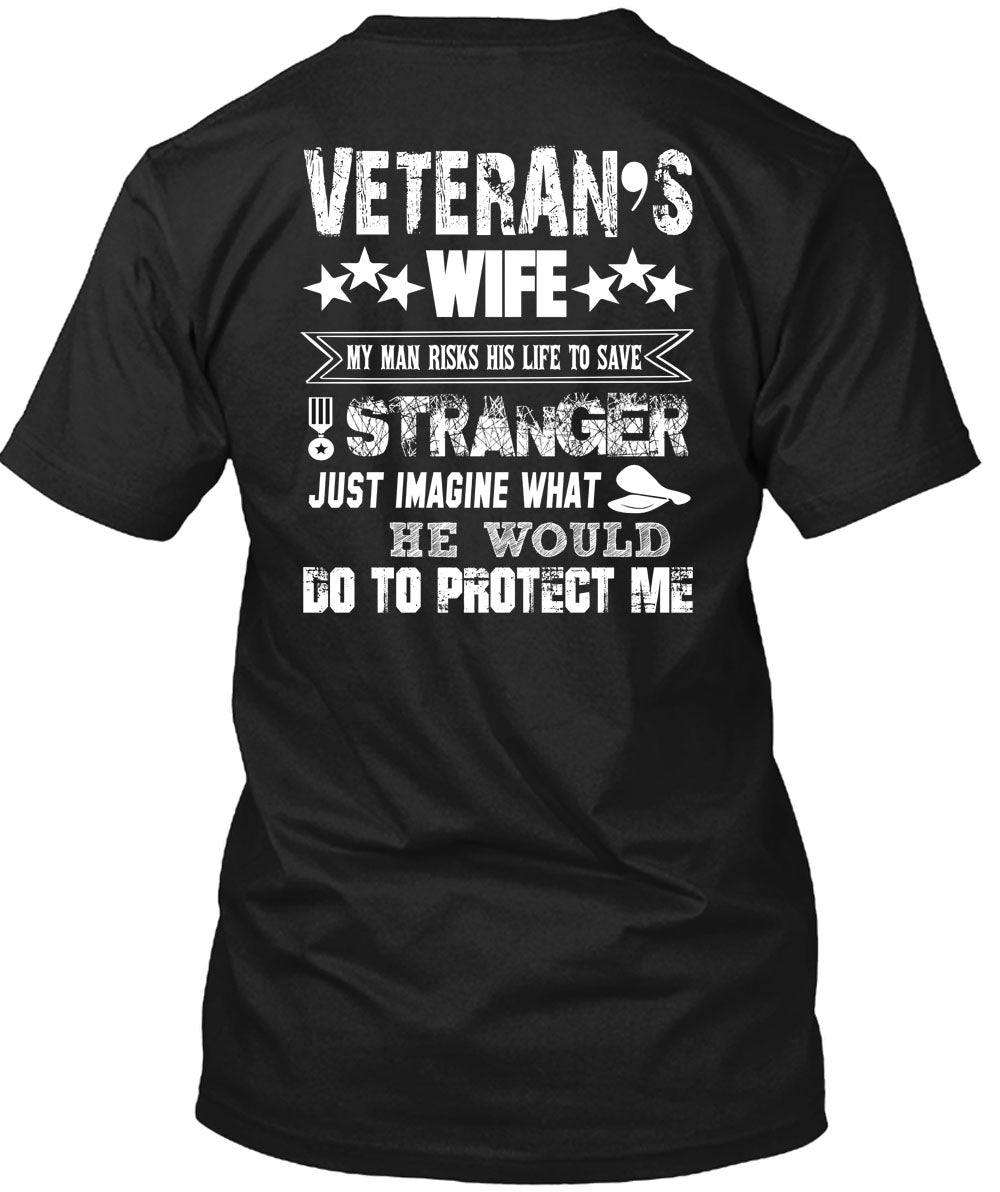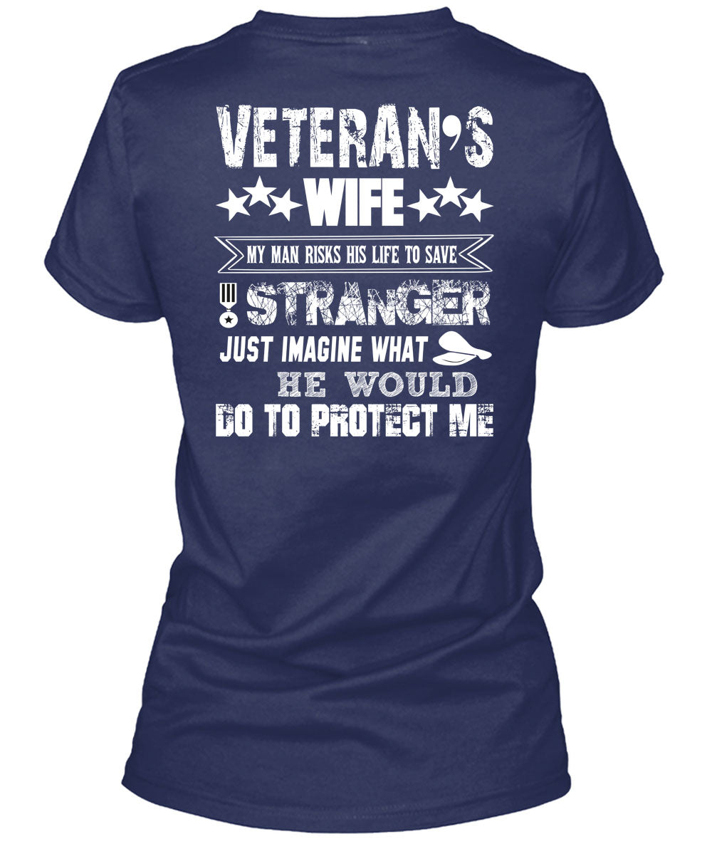Veteran's Wife My Man Risks His Life To Save Stranger T Shirt, He Would Do To Protect Me T Shirt