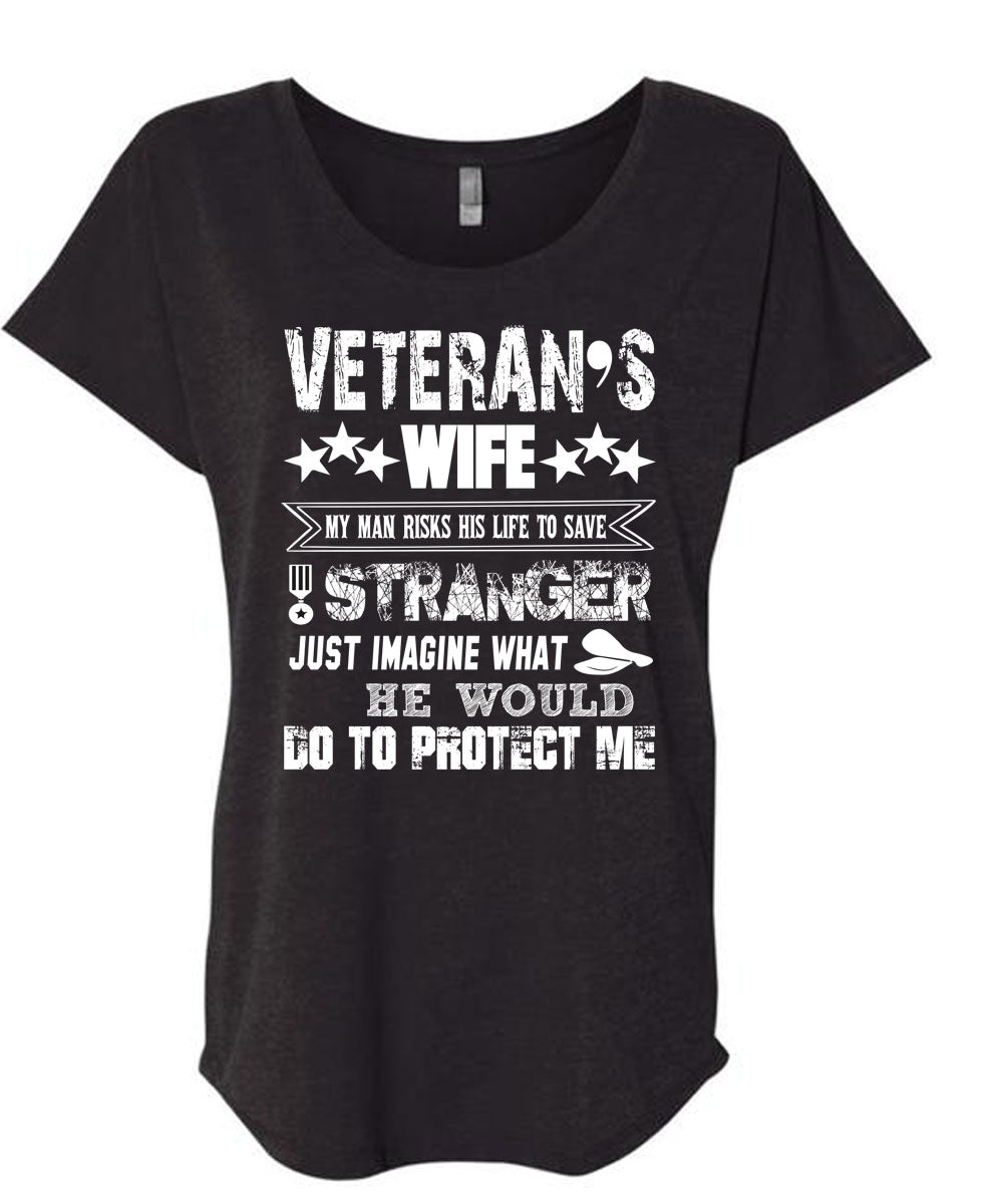 Veteran's Wife My Man Risks His Life To Save Stranger T Shirt, He Would Do To Protect Me T Shirt, Cool Shirt (Ladies' Triblend Dolman Sleeve)