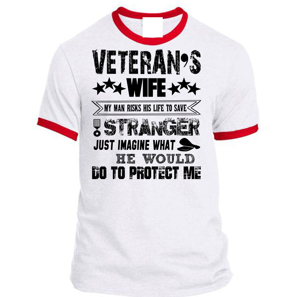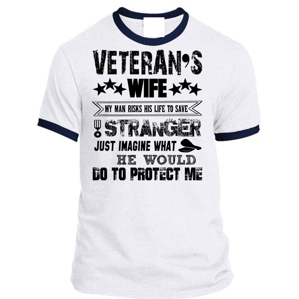 Veteran's Wife My Man Risks His Life To Save Stranger T Shirt, I Love Veteran T Shirt, Awesome T-Shirts