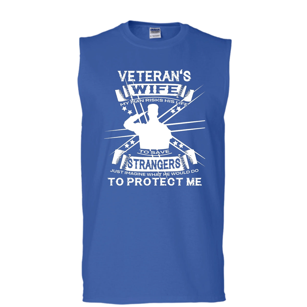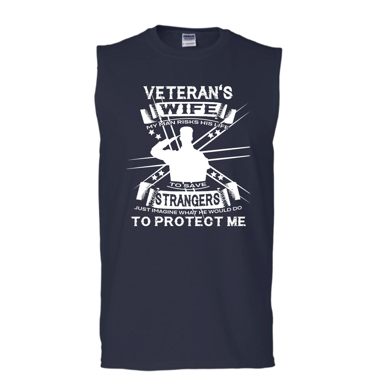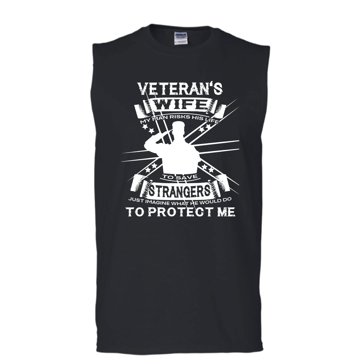 Veteran's Wife Shirt, My Man Risk His Life To Save Strangers Shirt (Men's Cotton Sleeveless)