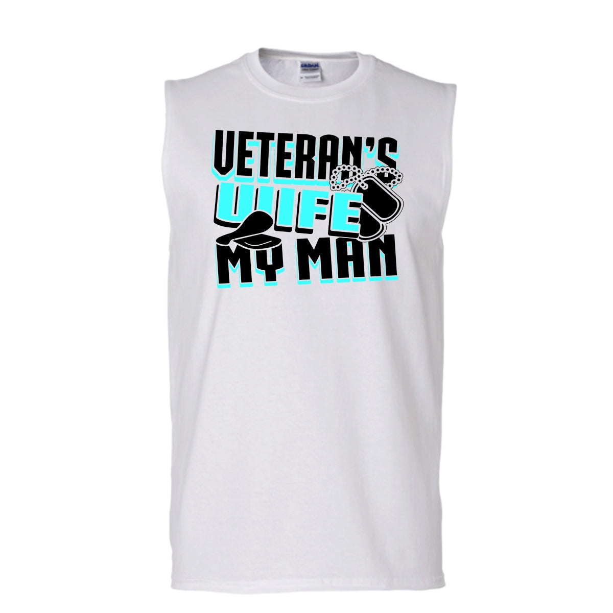 Veteran's Wife T Shirt, Coolest Veteran Husband T Shirt, Awesome t-shirts (Men's Cotton Sleeveless)