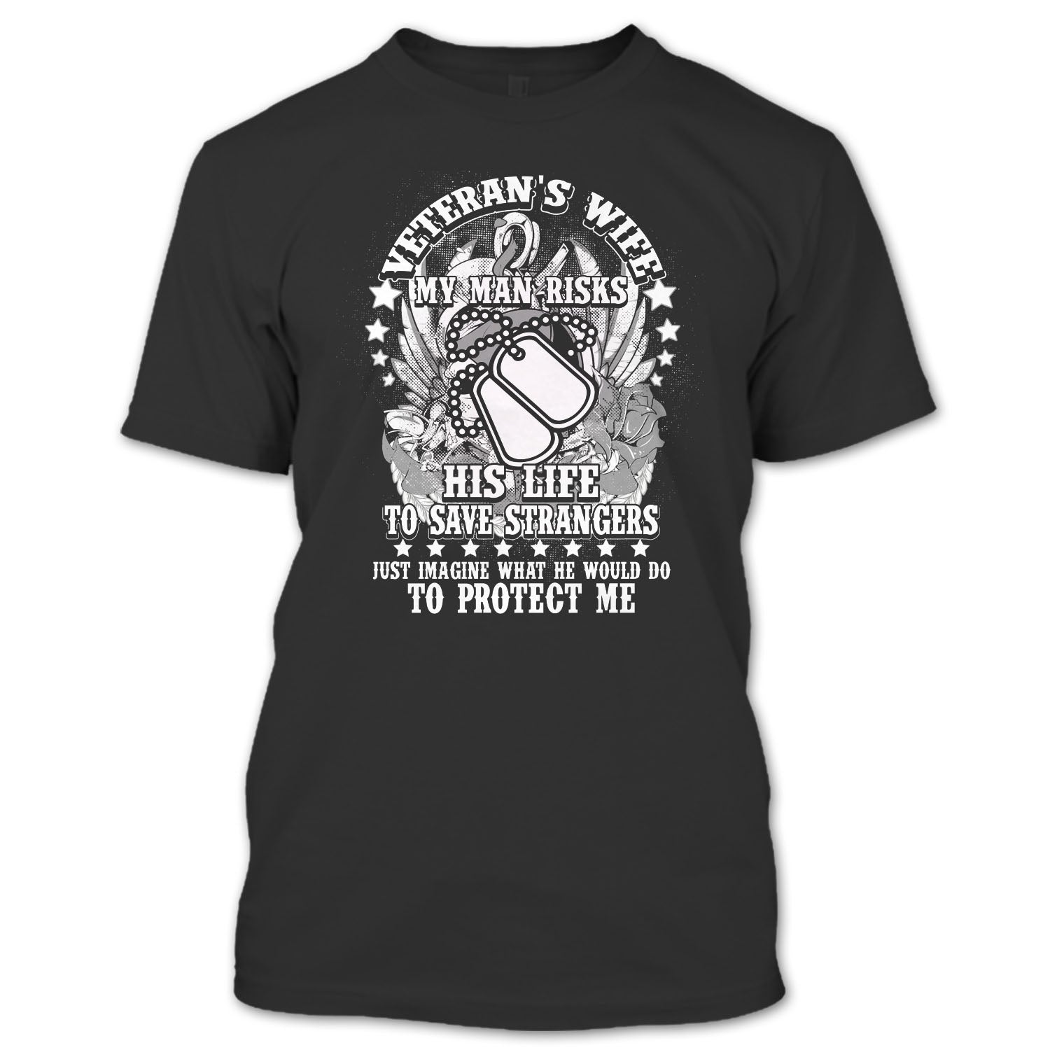 Veteran's Wife T Shirt, My Man Risk His Life T Shirt
