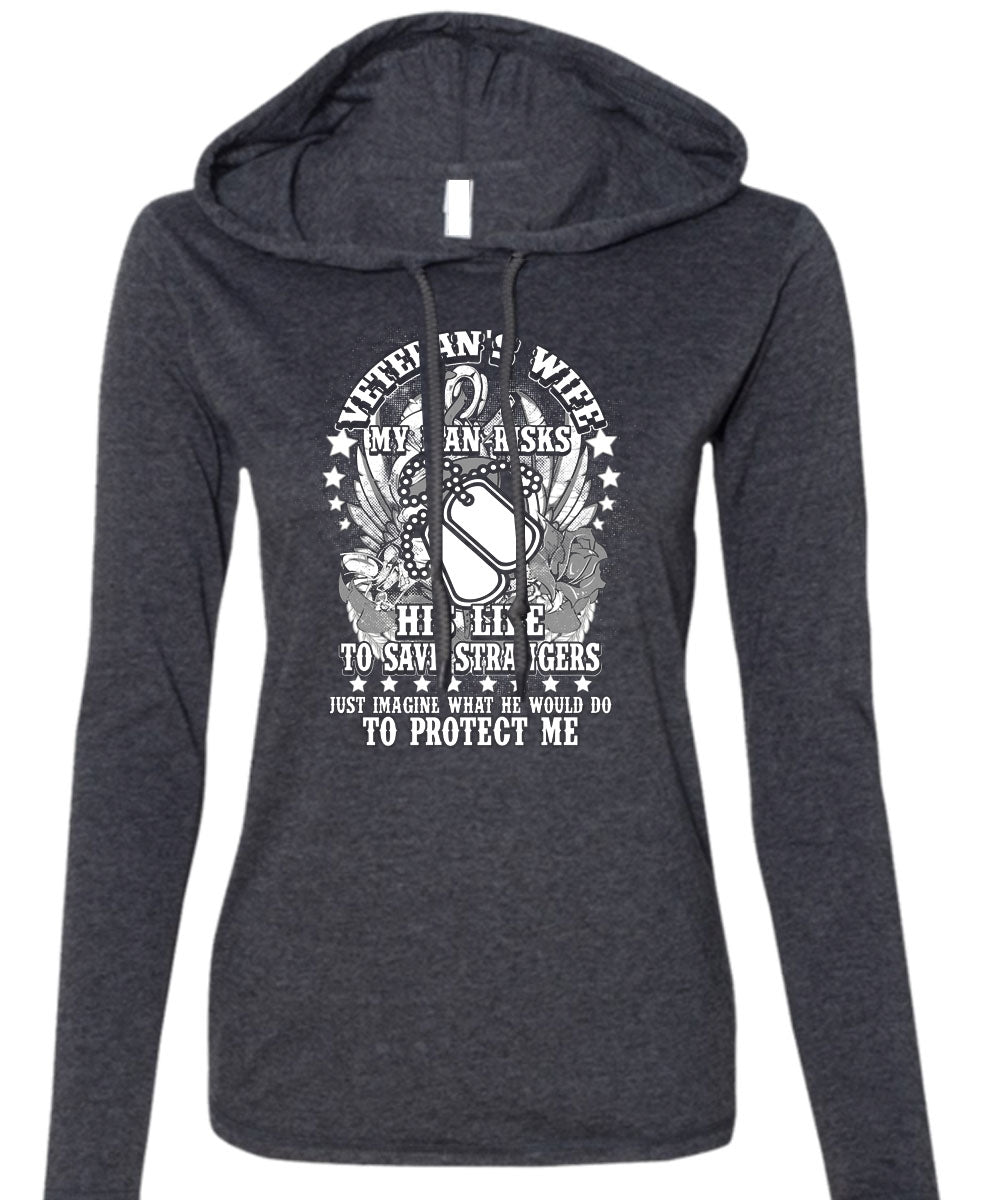 Veteran's Wife T Shirt, My Man Risks His Life T Shirt (Anvil Ladies Ringspun Hooded)