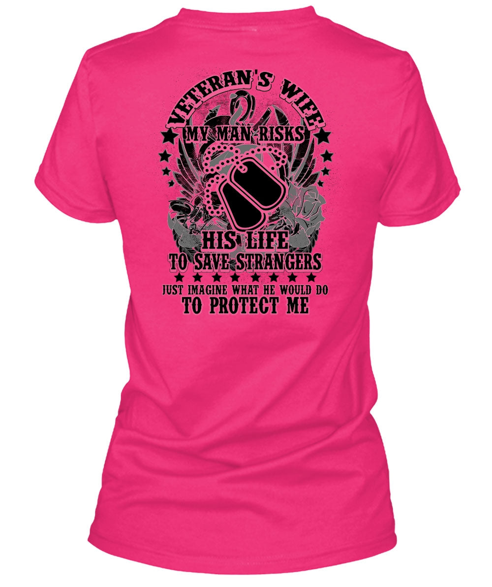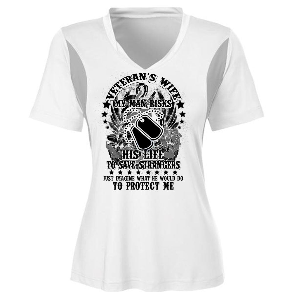Veteran's Wife T Shirt, My Man Risks His Life T Shirt, Cool Shirt (Ladies LS Heather V-Neck)
