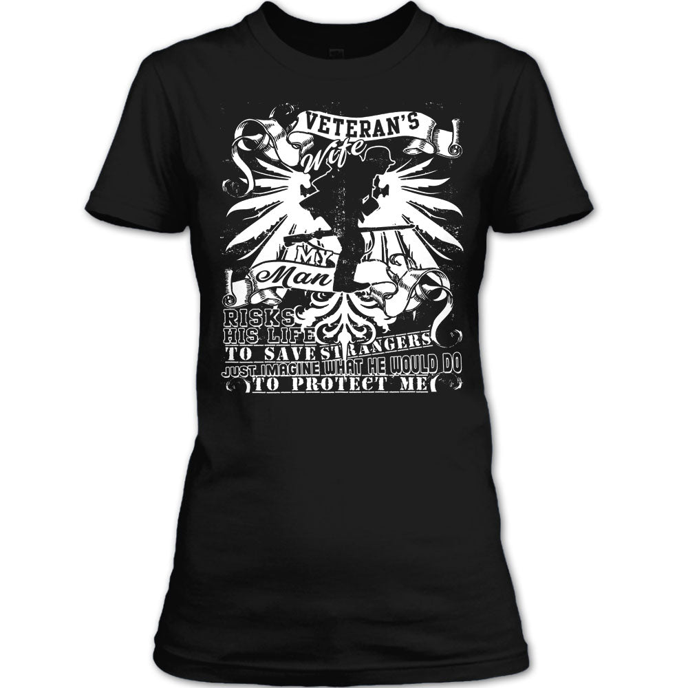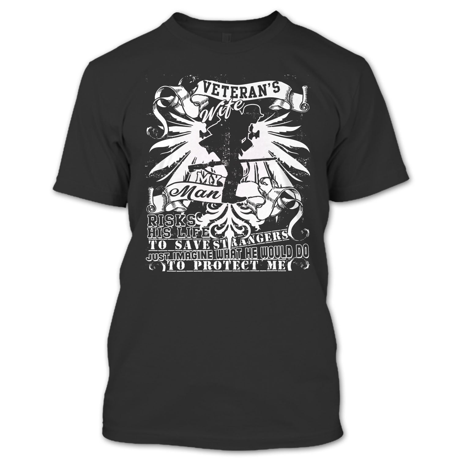 Veteran's Wife T Shirt, Veteran My Man Risk His Life T Shirt