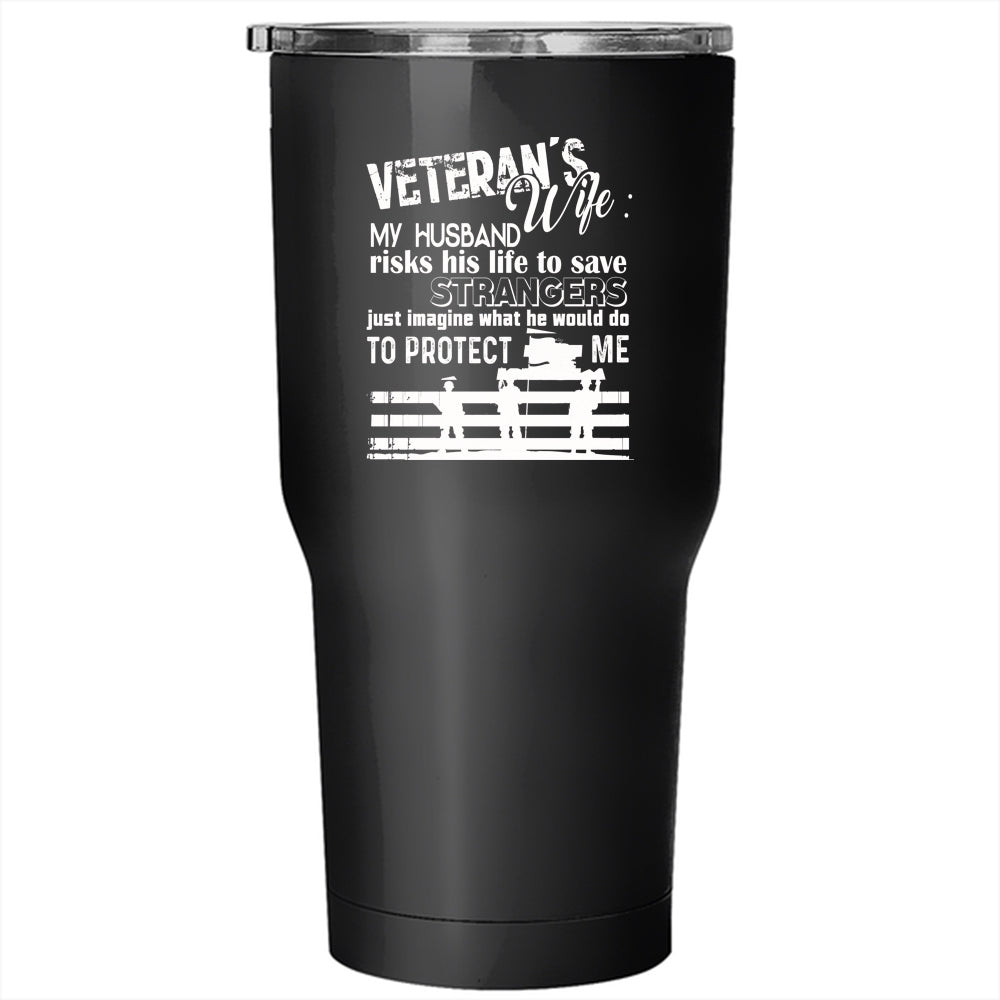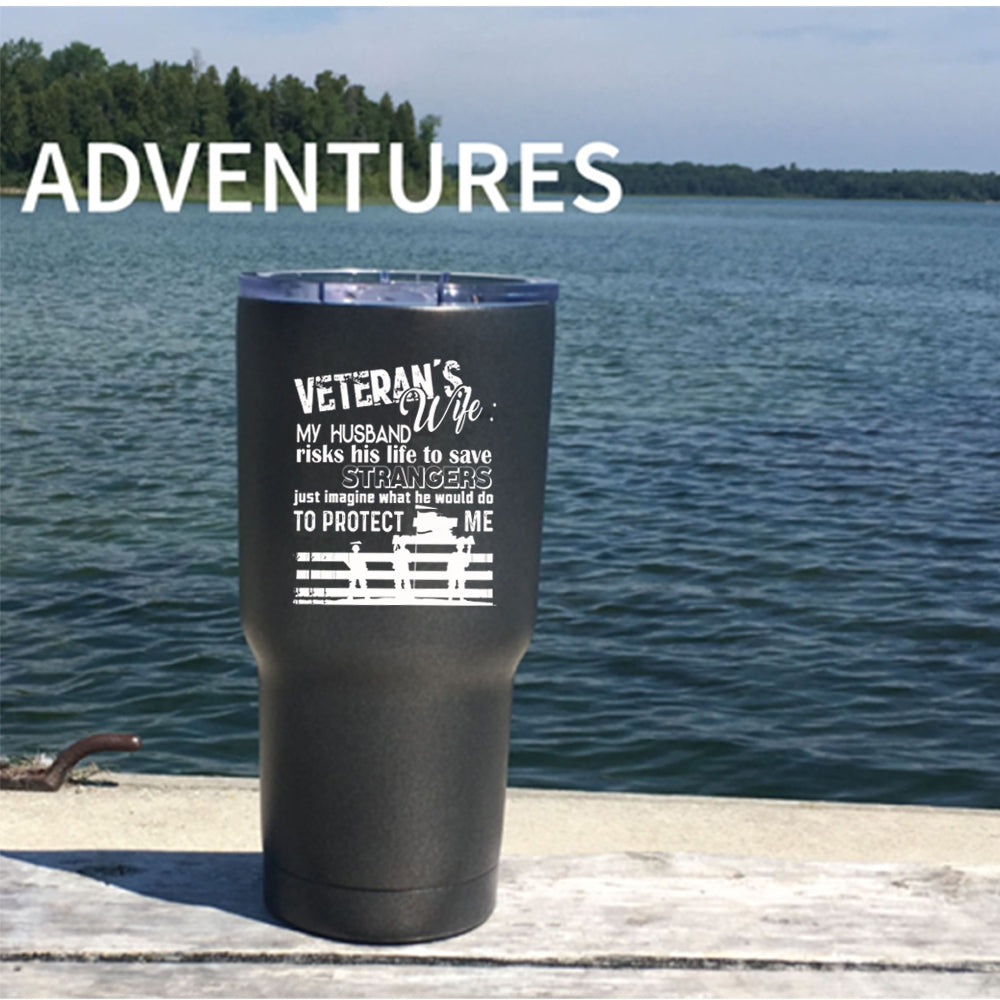Veteran's Wife Tumbler 30 oz Stainless Steel, He Would Do To Protect Me Travel Mug