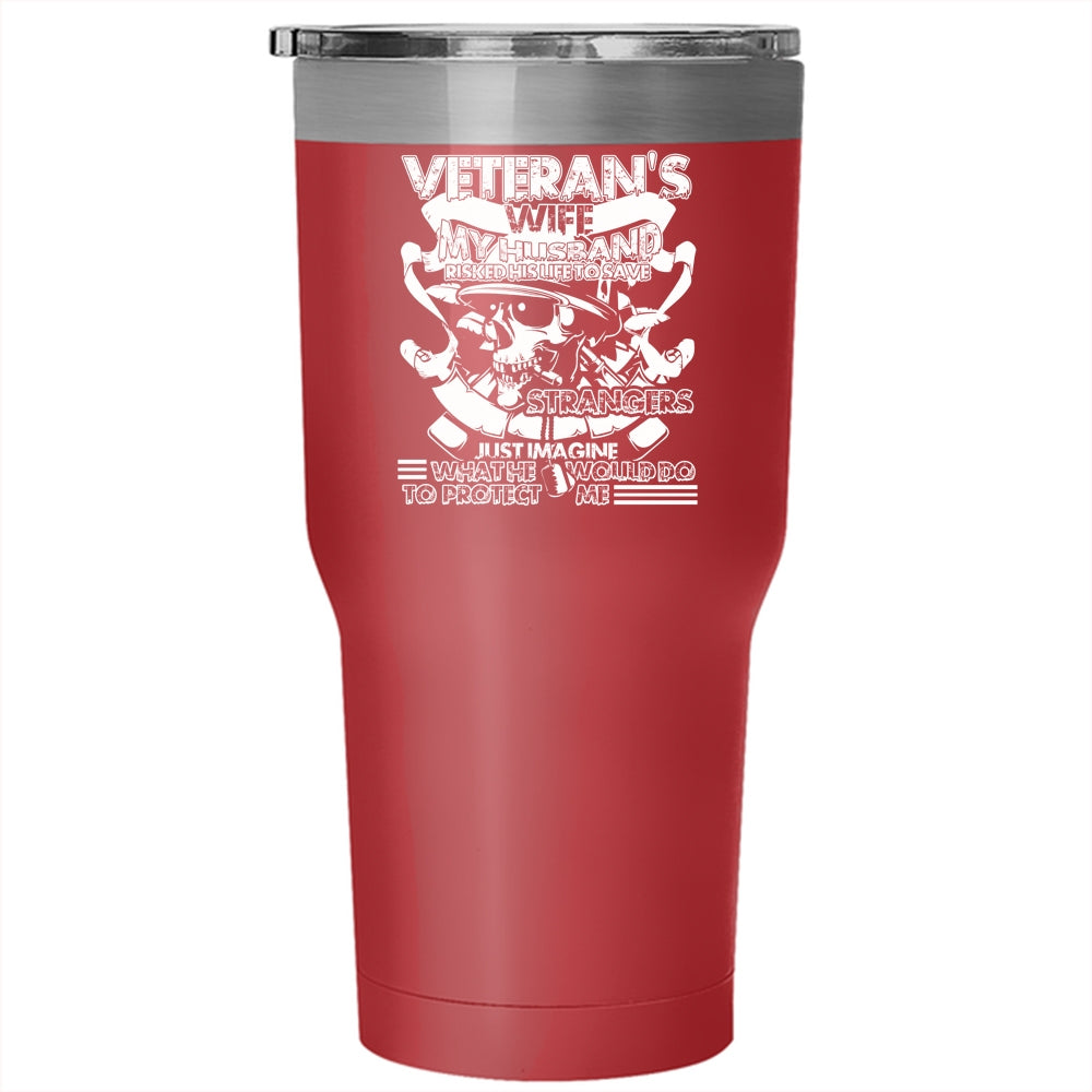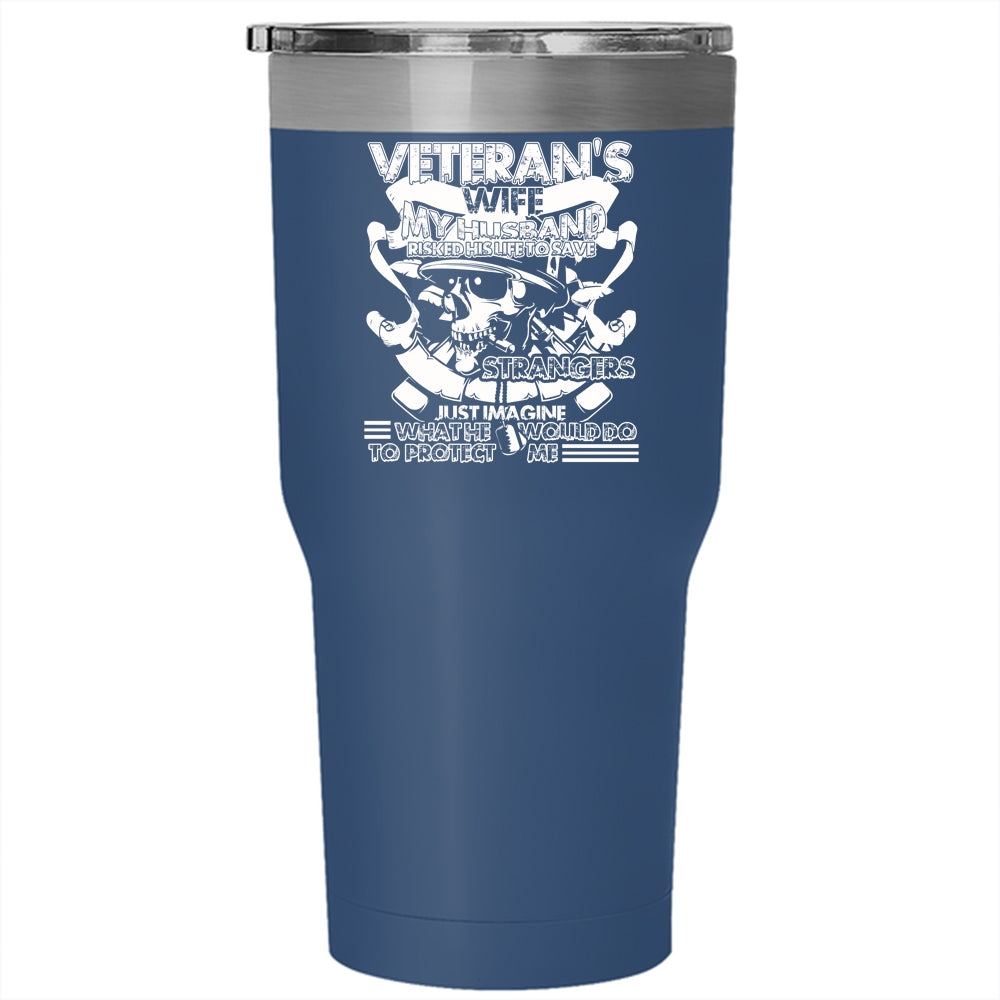 Veteran's Wife Tumbler 30 oz Stainless Steel, My Husband Would Do To Protect Me Travel Mug