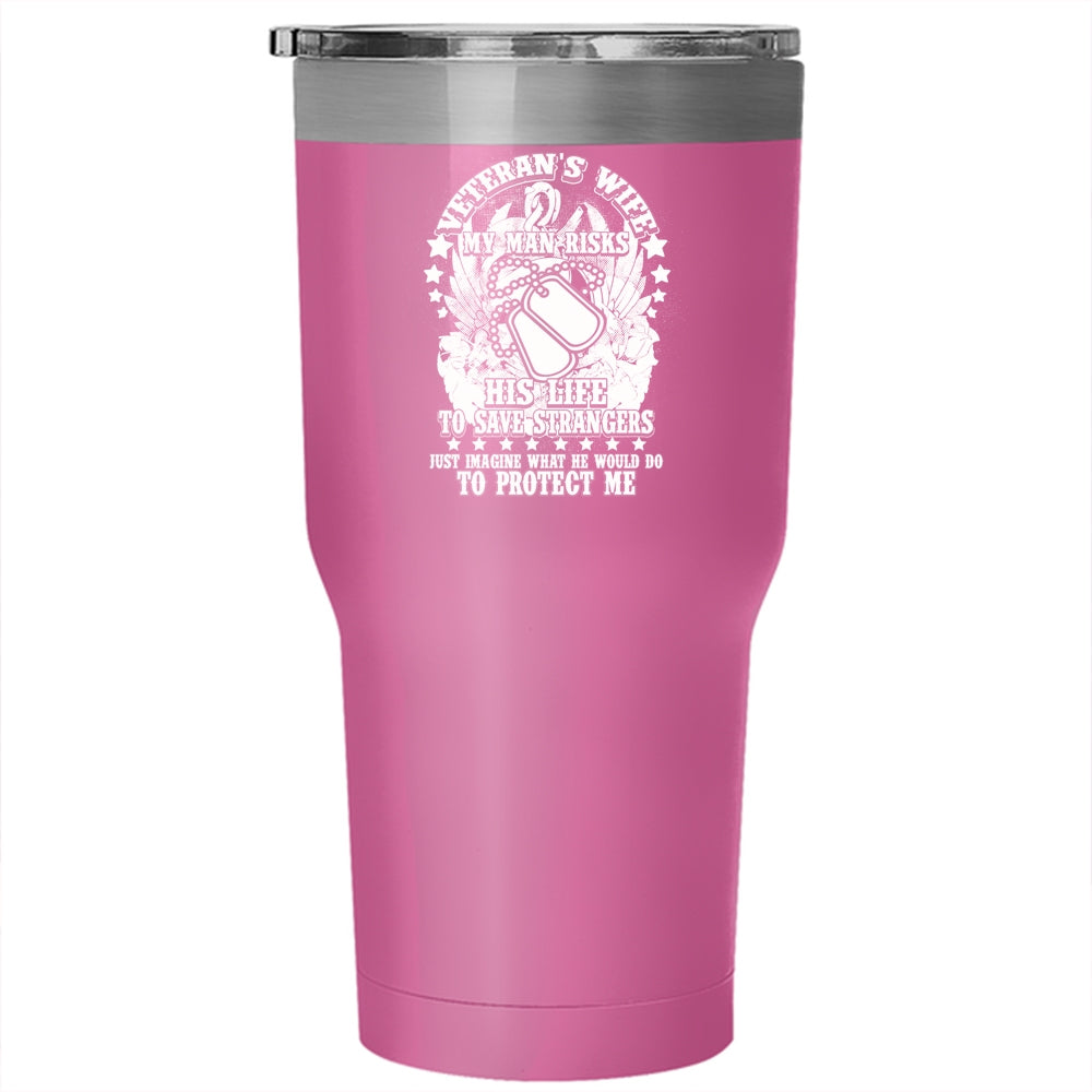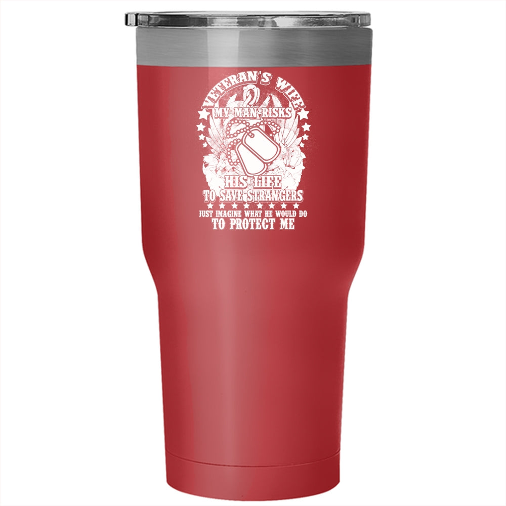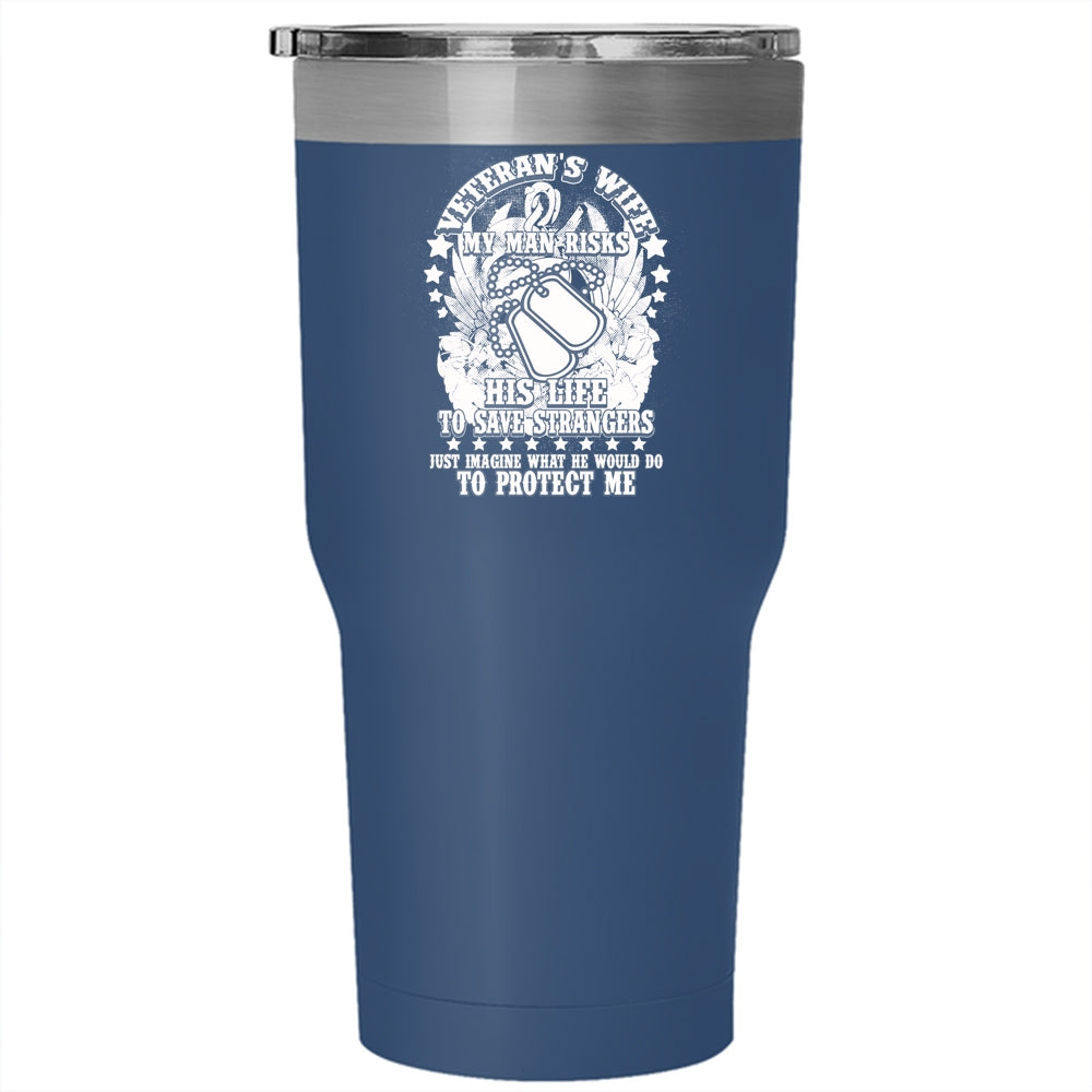 Veteran's Wife Tumbler 30 oz Stainless Steel, My Man Protect Me Travel Mug