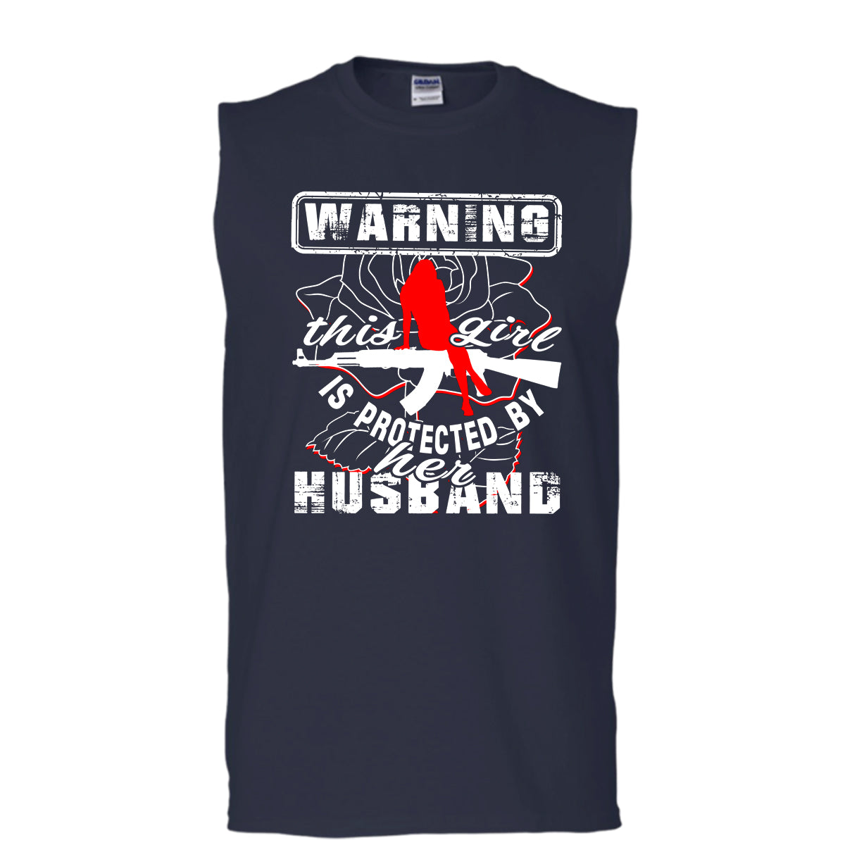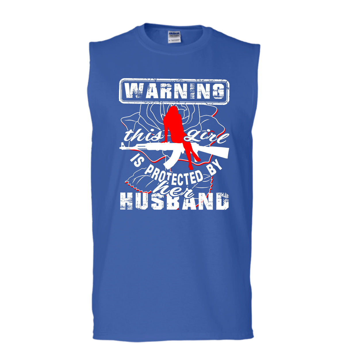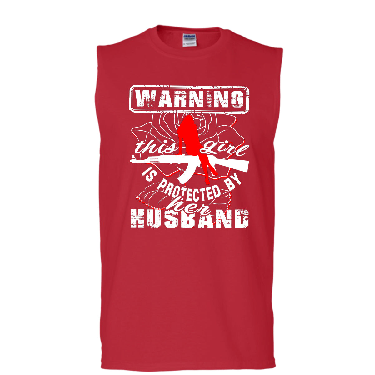Warning T Shirt, This Girl Is Protected By Her Husband T Shirt, Cool T Shirt (Men's Cotton Sleeveless)