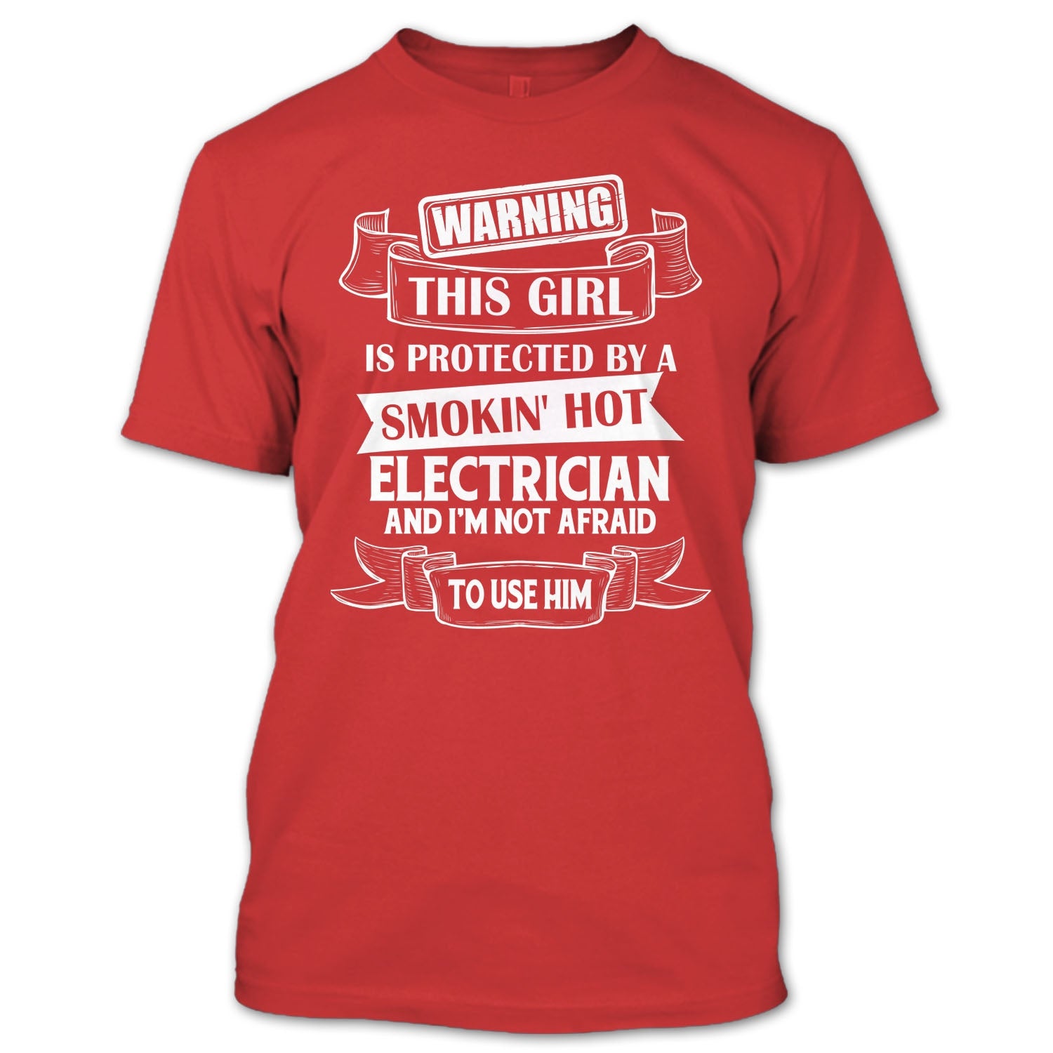 Warning This Girl Is Protected By A Smokin’ Hot Electrican T Shirt, Electrician’s Wife T Shirt