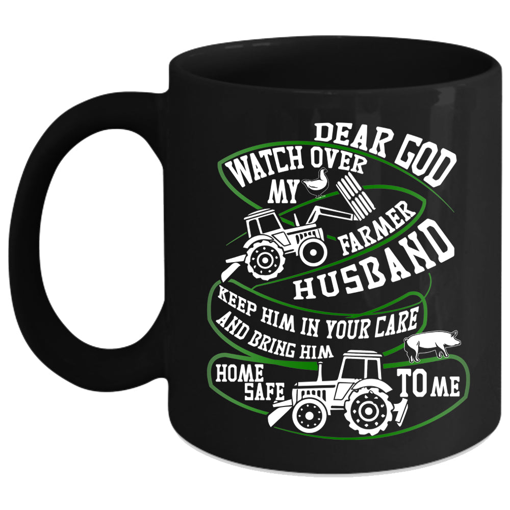 Watch Over My Farmer Husband Coffee Mug, Cool Farmer Husband Coffee Cup
