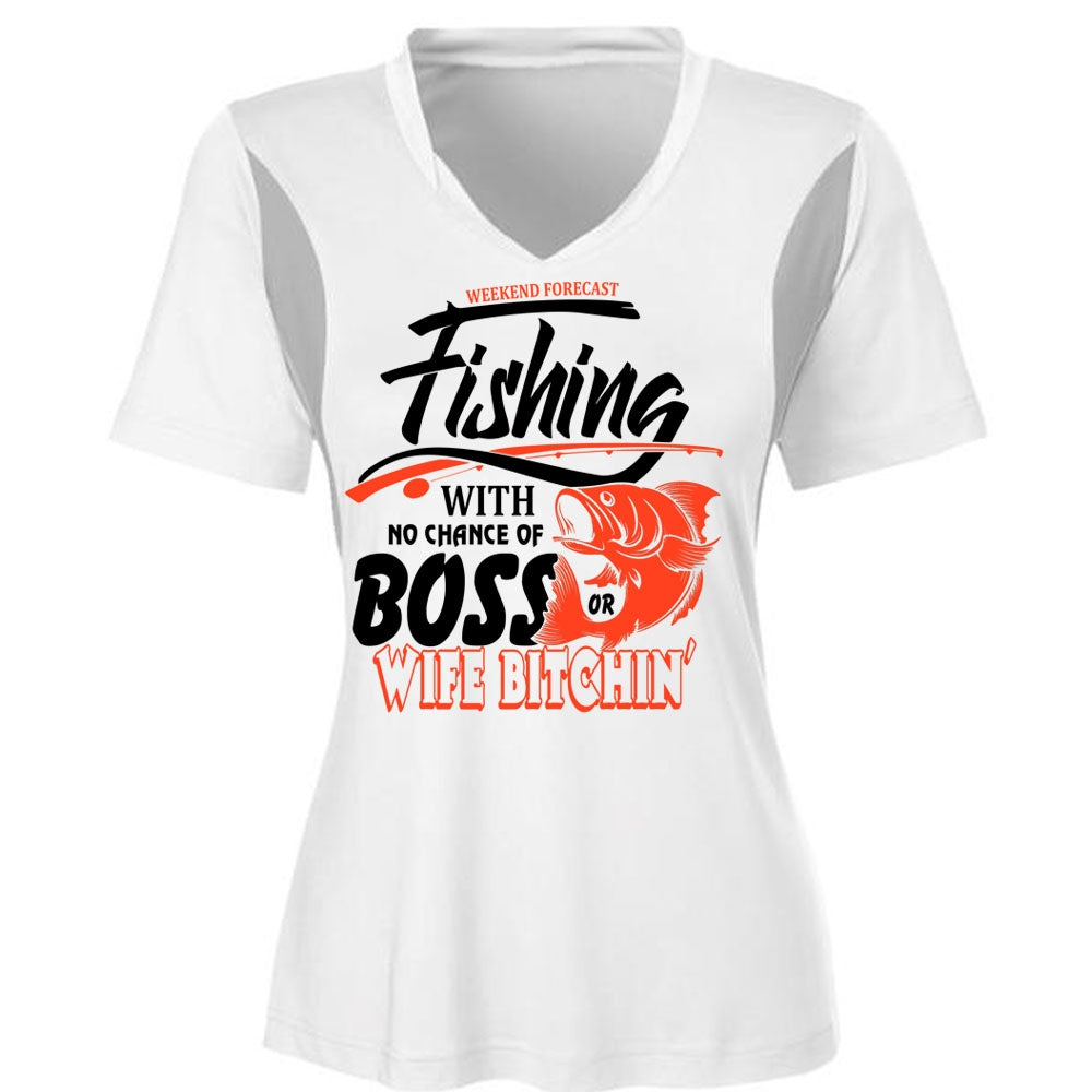 Weekend Forecast Fishing T Shirt, Being A Wife T Shirt, Cool Shirt (Ladies LS Heather V-Neck)