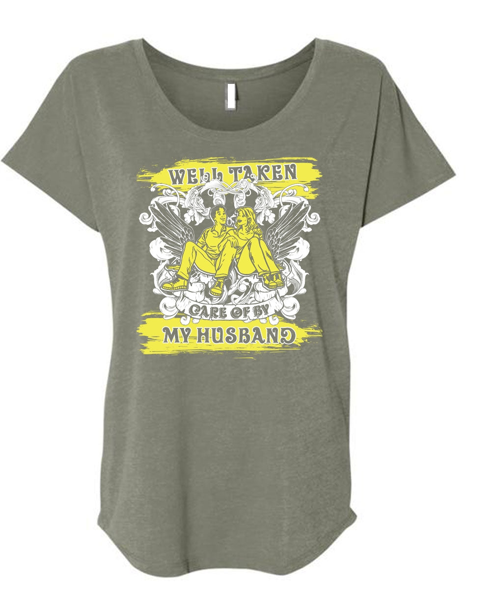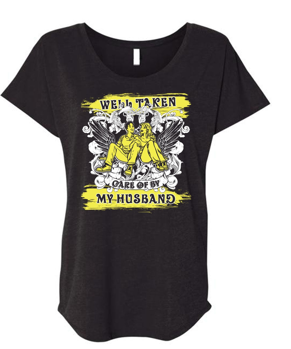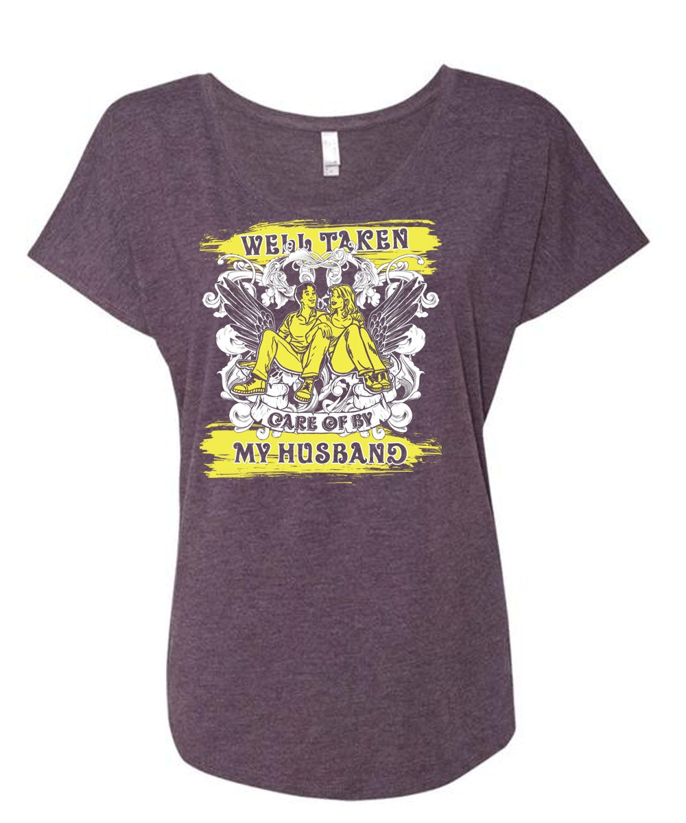 Well Taken Care Of By My Husband T Shirt, Being A Husband T Shirt, Cool Shirt (Ladies' Triblend Dolman Sleeve)