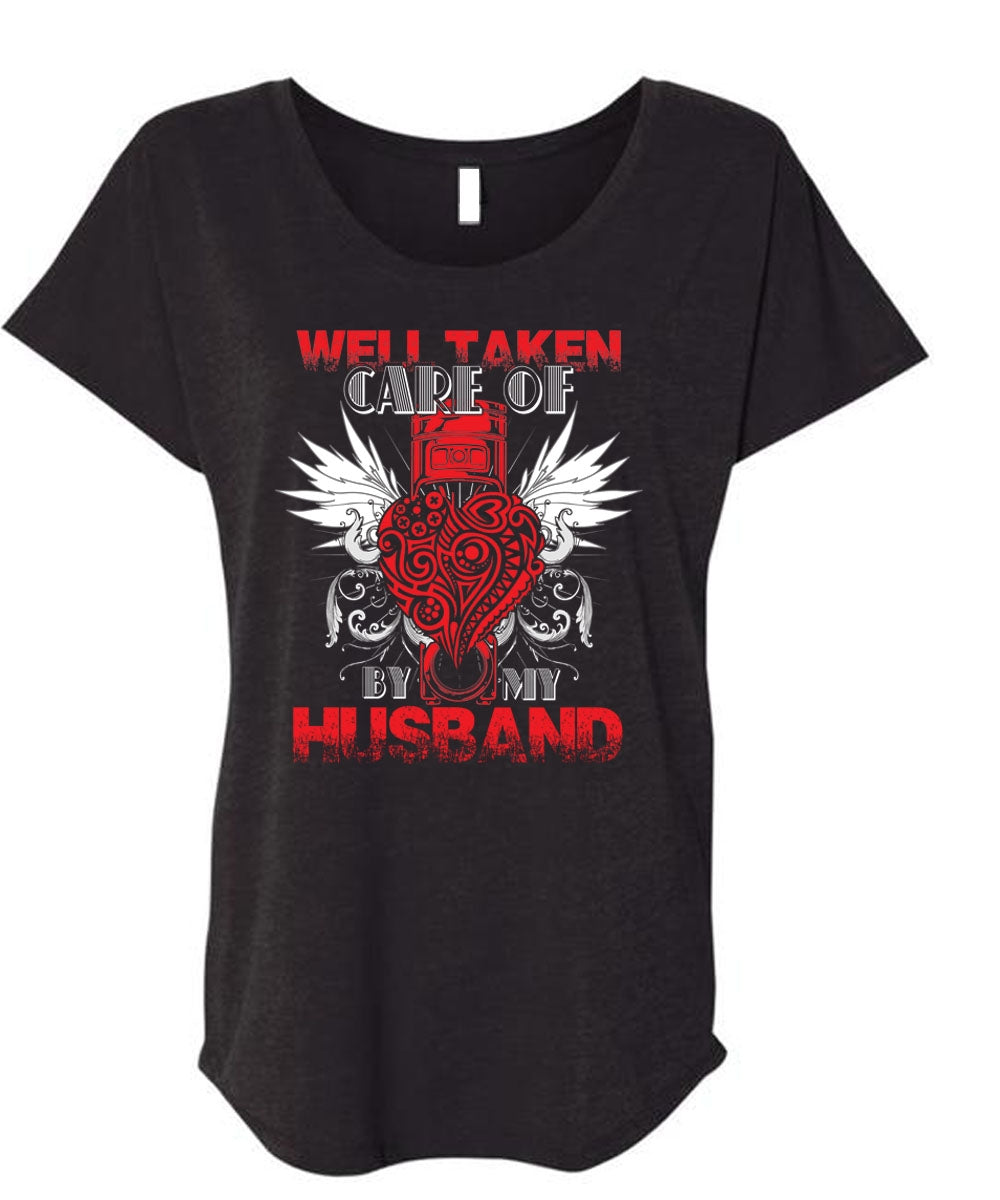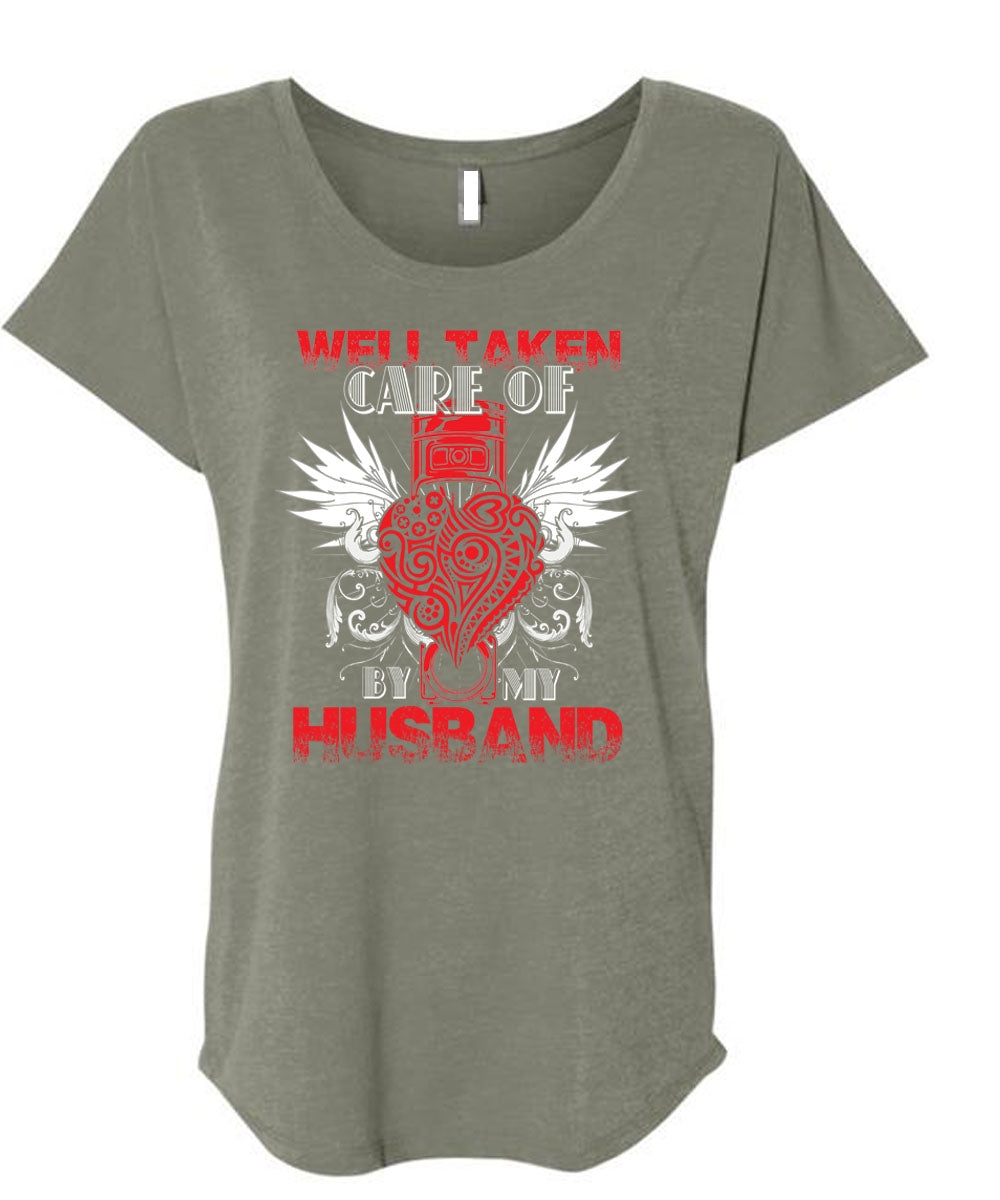 Well Taken Care Of Heart By My Husband T Shirt, Being A Husband T Shirt, Cool Shirt (Ladies' Triblend Dolman Sleeve)