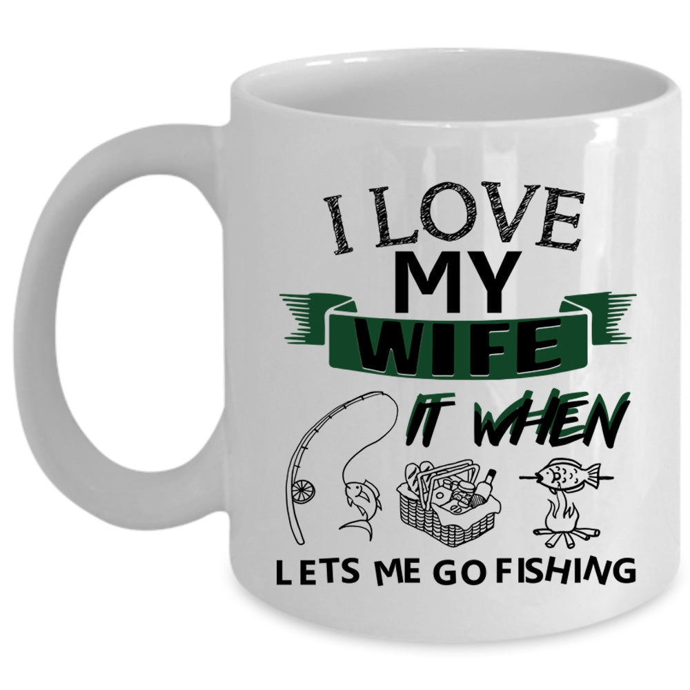 When Lets Me Go Fishing Coffee Mug, I Love My Wife Cup