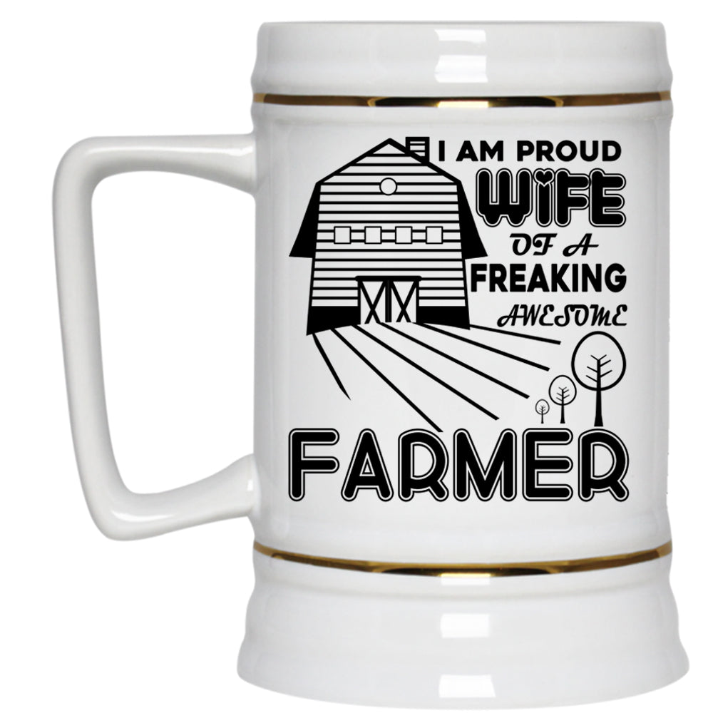 Wife Beer Stein 22oz, Proud Wife Of A Freaking Awesome Farmer Beer Mug