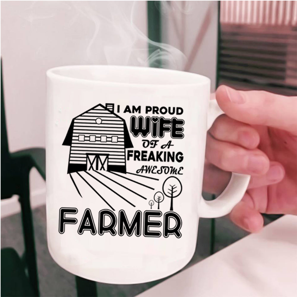 Wife Coffee Mug, Proud Wife Of A Freaking Awesome Farmer Cup