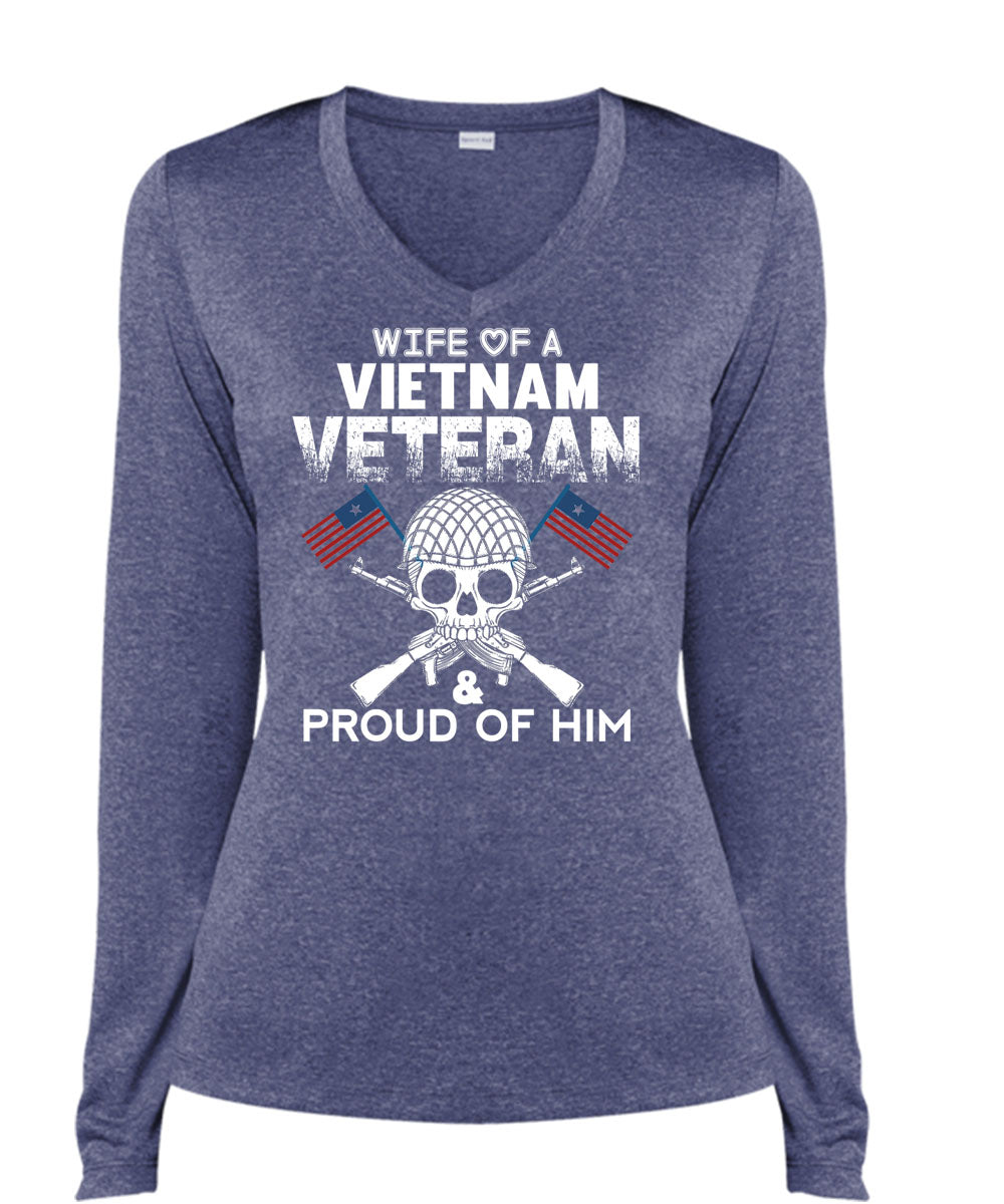 Wife Of A Vietnam Veteran T Shirt, Being A Veteran T Shirt, Cool Shirt (Ladies LS Heather V-Neck)