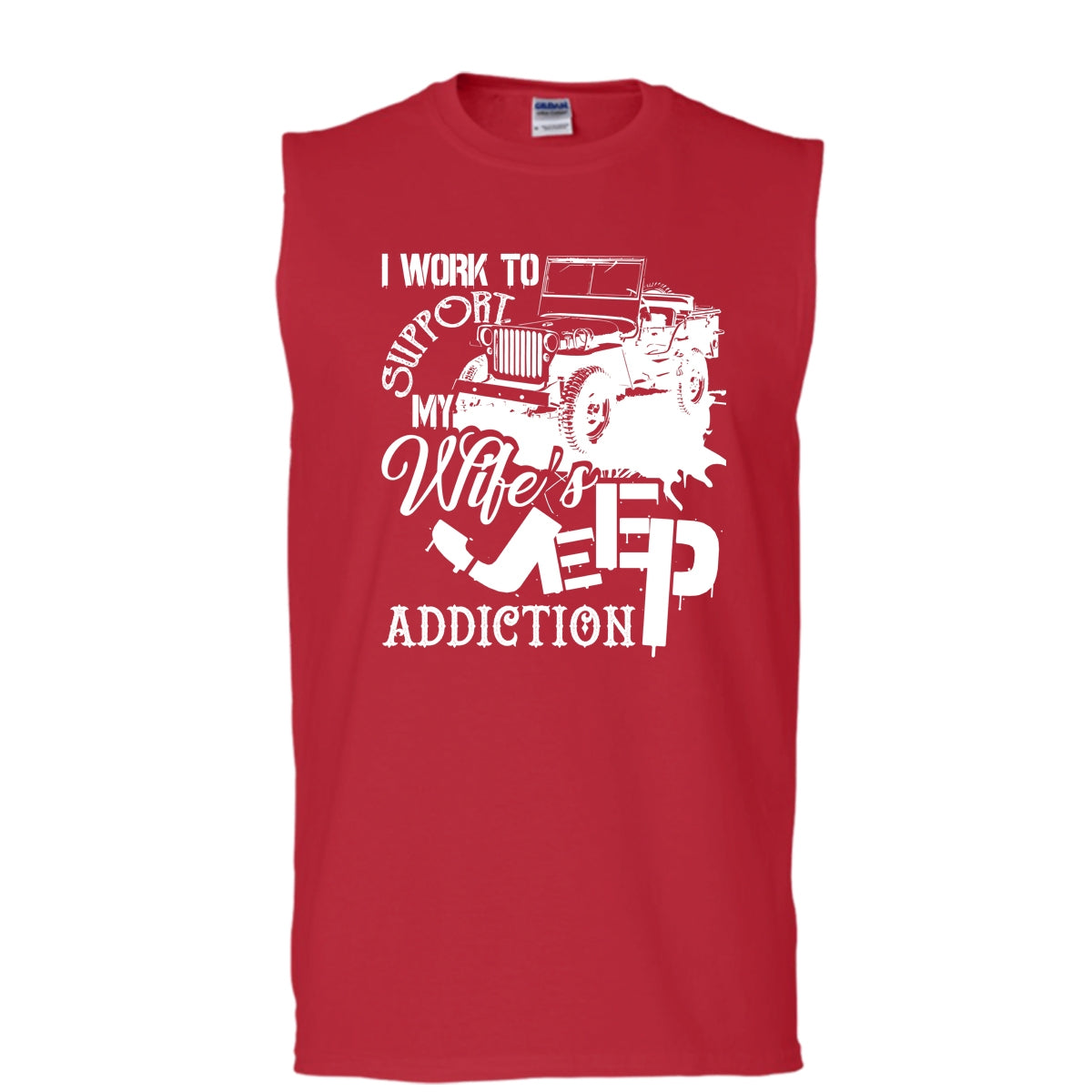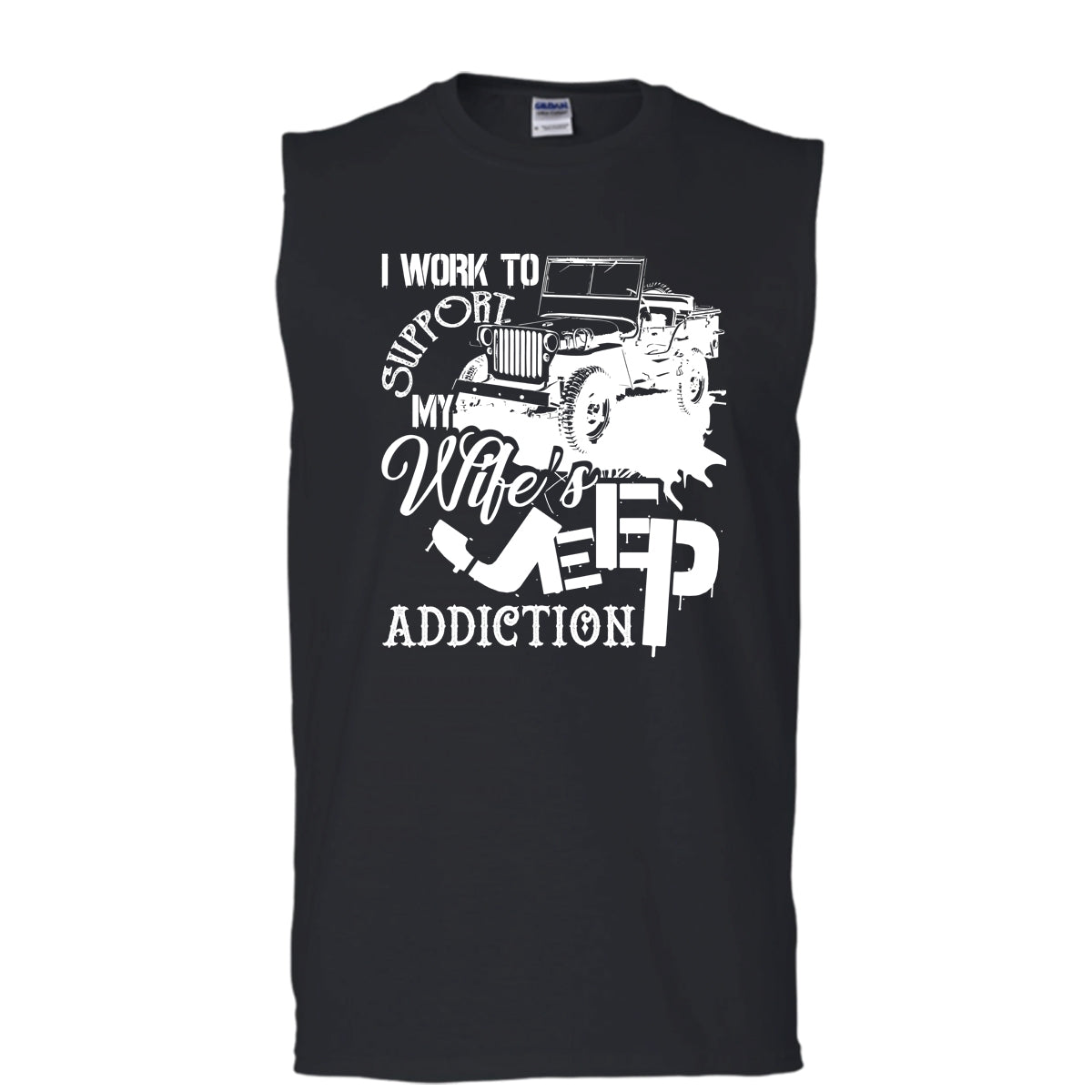 Work To Support My Wife's Jeep T Shirt, Wife's Jeep Addiction Tank Top (Men's Cotton Sleeveless)