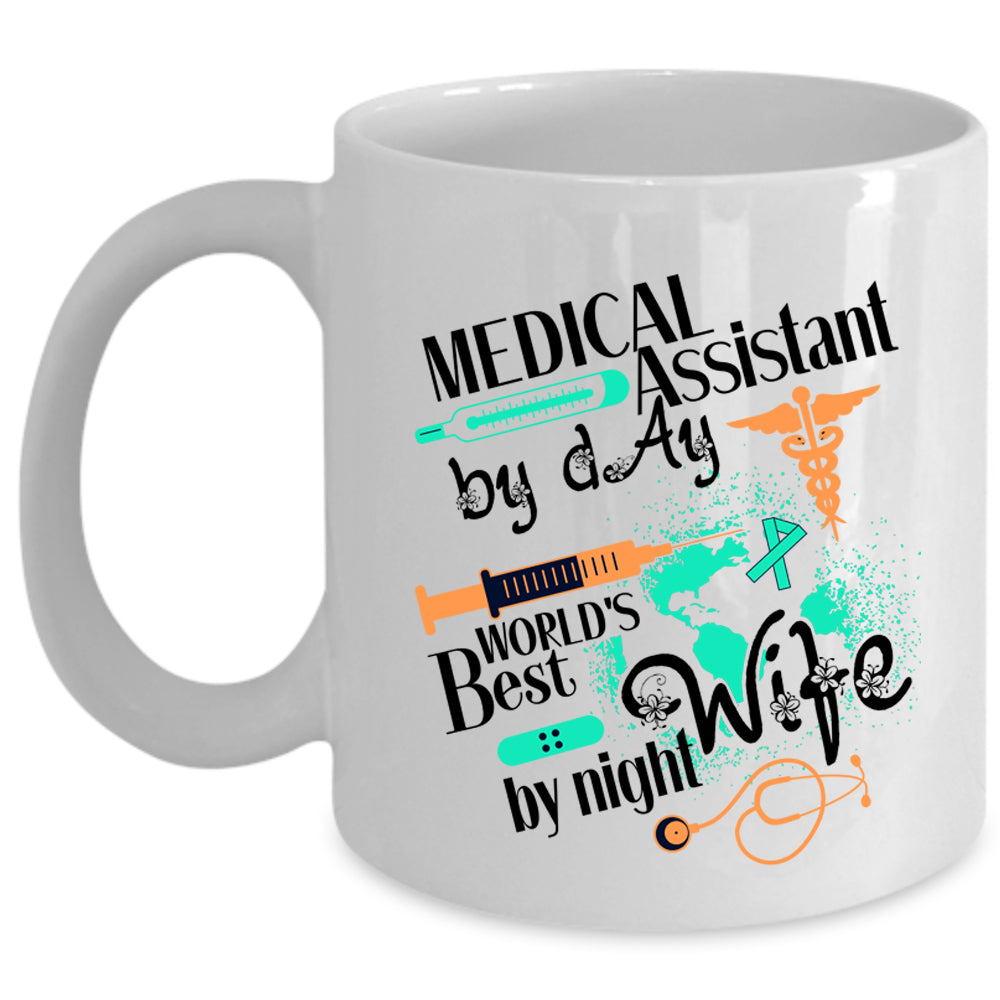 World's Best Wife By Night Coffee Mug, Medical Assistant By Day Cup