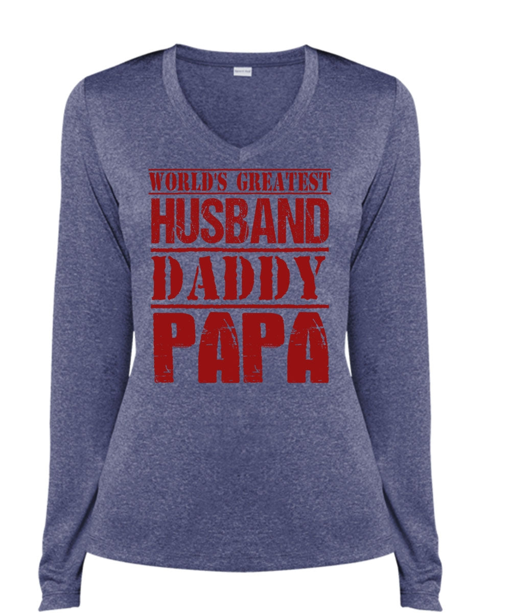 World's Greatest Husband Daddy Papa T Shirt, Being A Papa T Shirt, Cool Shirt (Ladies LS Heather V-Neck)