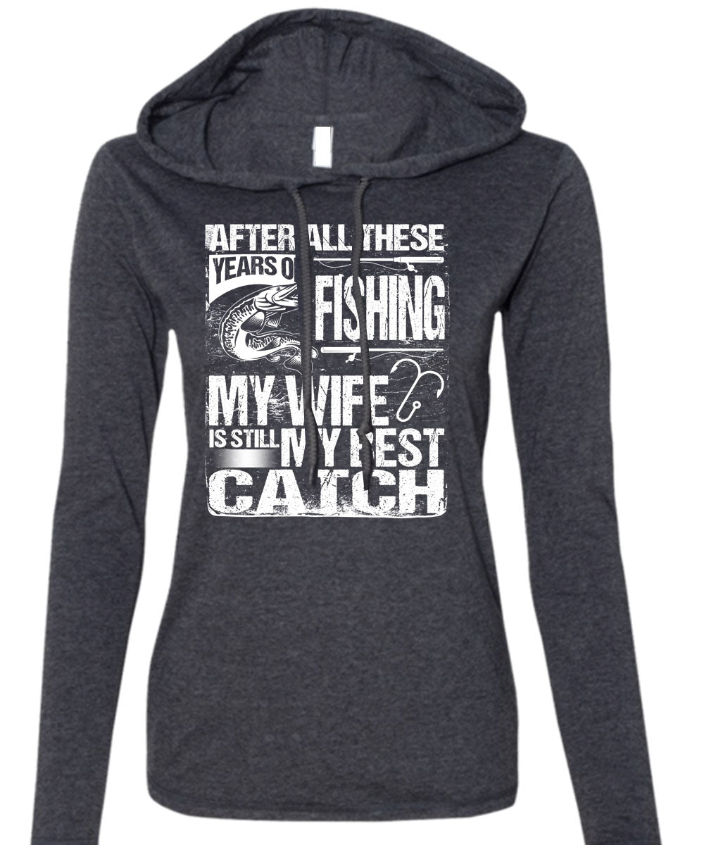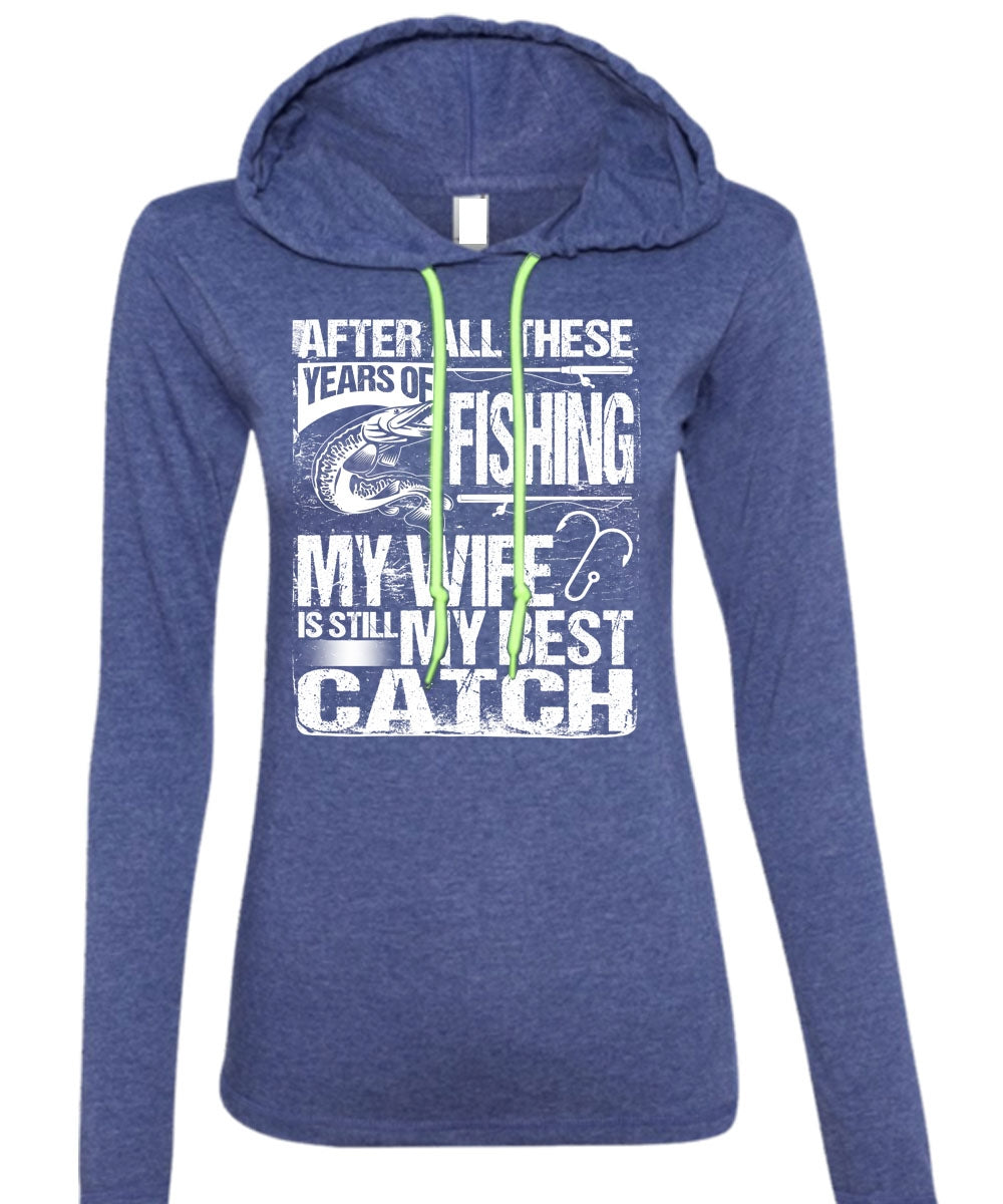 Years Of Fishing T Shirt, My Wife Is Still My Best Catch T Shirt (Anvil Ladies Ringspun Hooded)