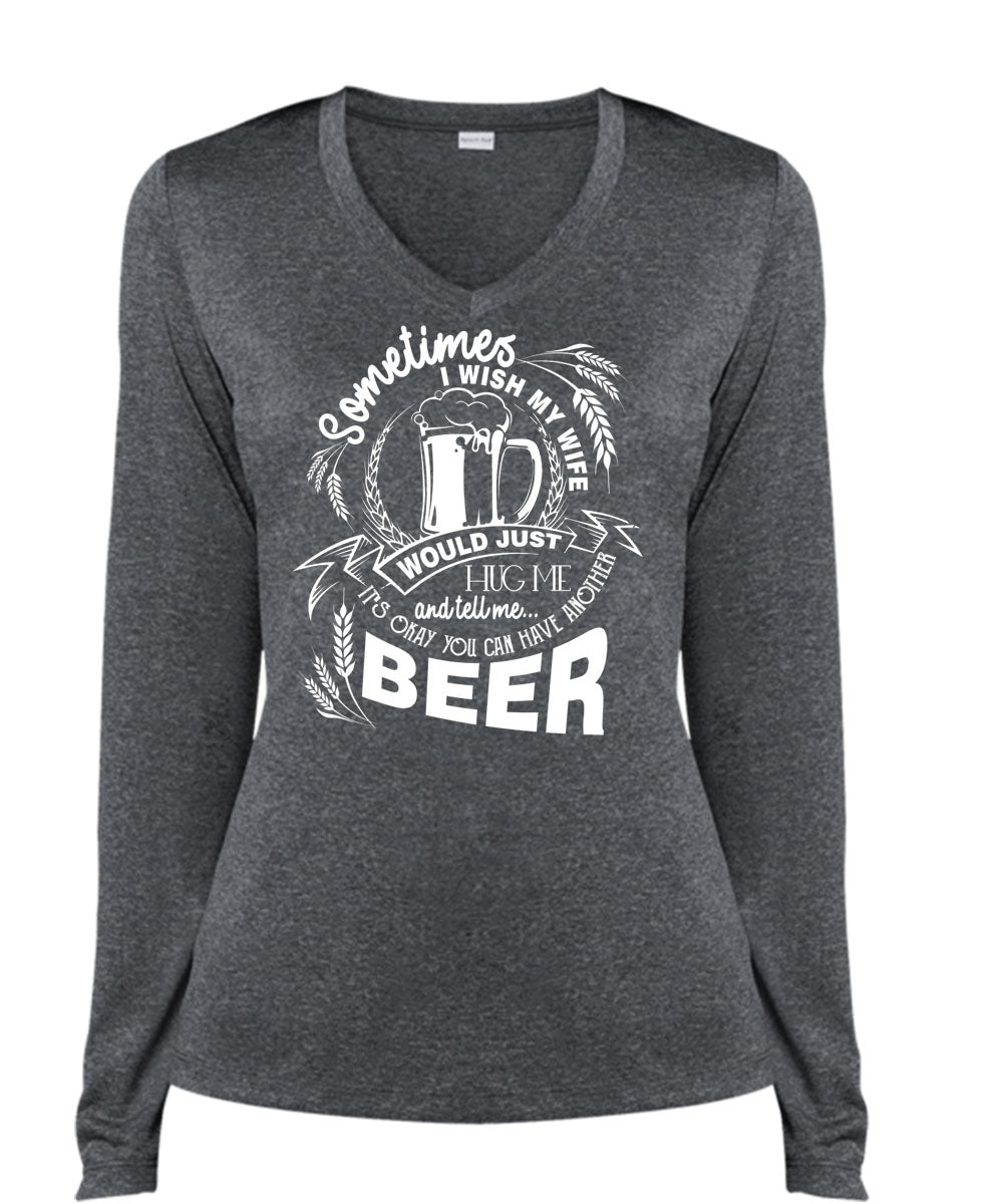 You Can Have Another Beer T Shirt, I Wish My Wife T Shirt, Cool Shirt (Ladies LS Heather V-Neck)