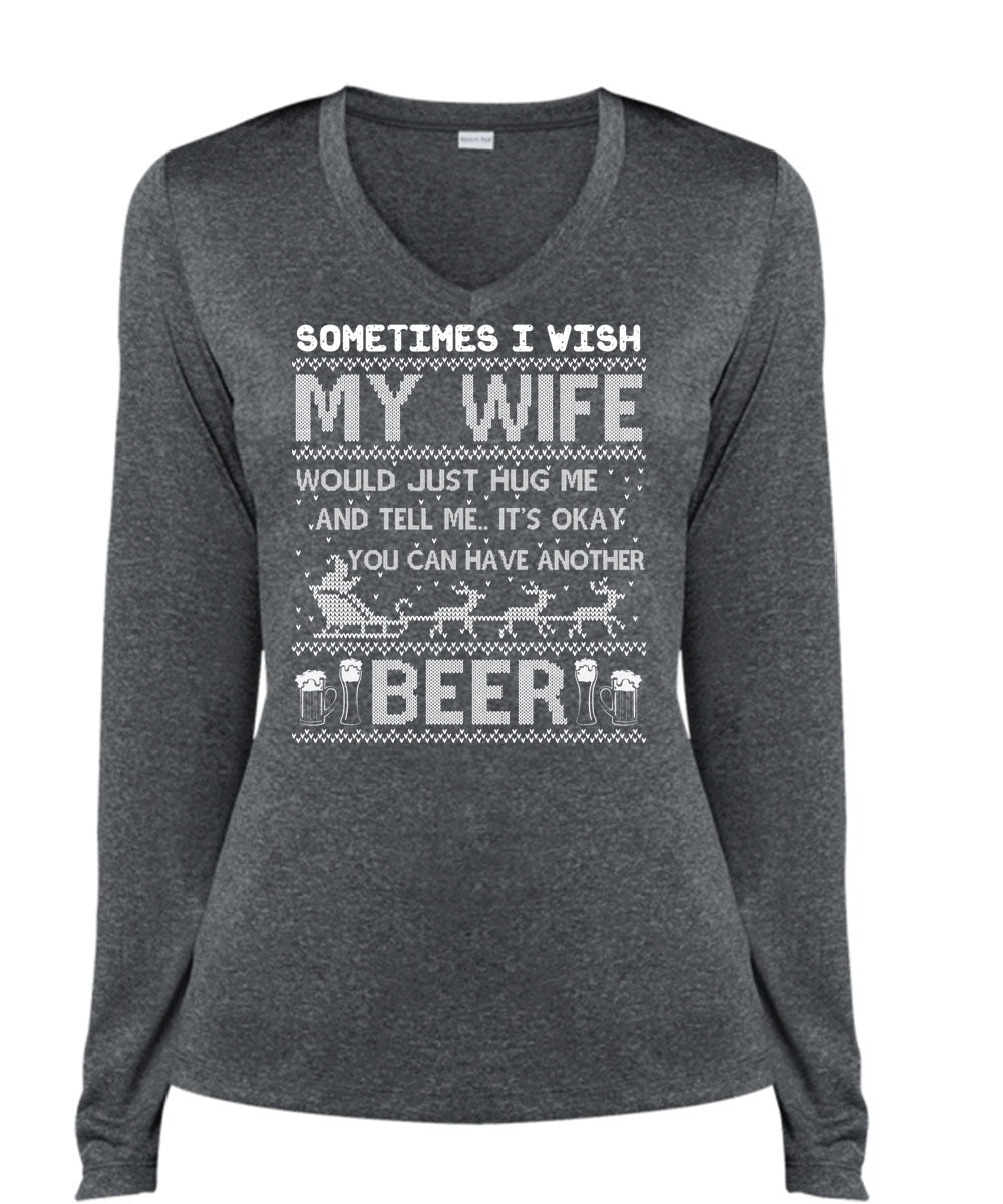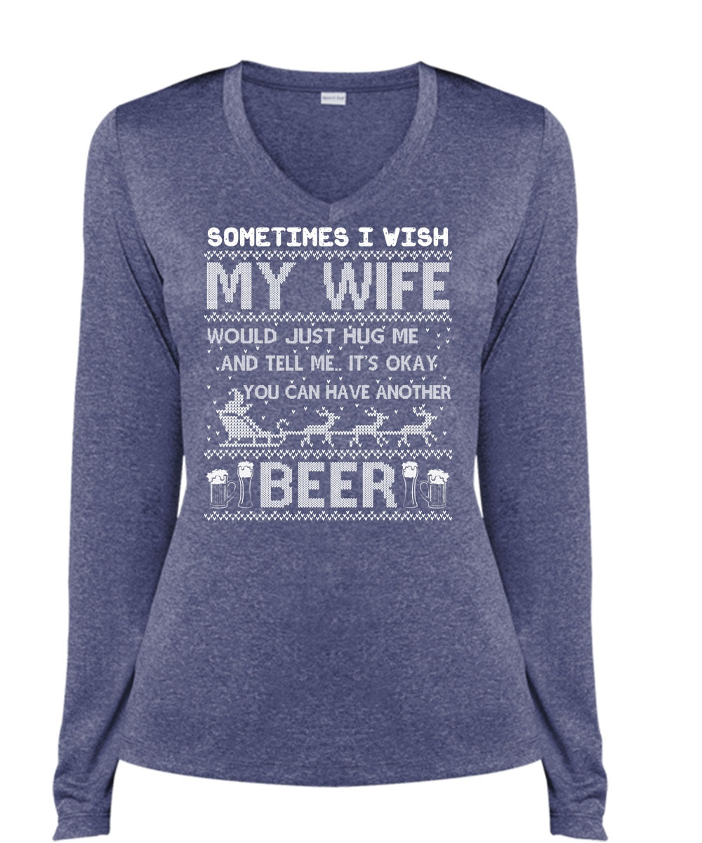 You Can Have Another Beer T Shirt, My Wife Would Just Hug Me T Shirt, Cool Shirt (Ladies LS Heather V-Neck)