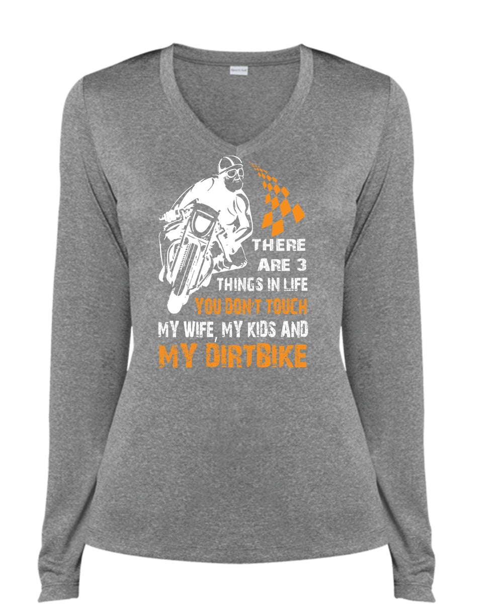 You Don't Touch My Wife My Kids And My Dirt Bike T Shirt, Outdoor Activity T Shirt (Ladies LS Heather V-Neck)