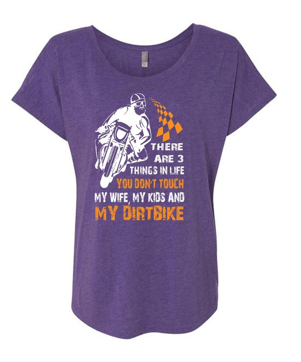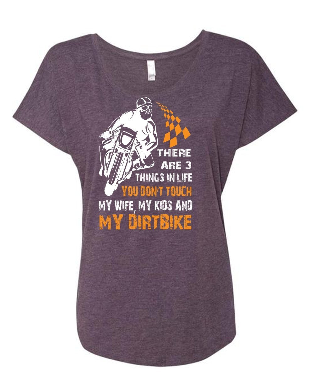 You Don't Touch My Wife My Kids And My Dirt Bike T Shirt, Outdoor Activity T Shirt (Ladies' Triblend Dolman Sleeve)