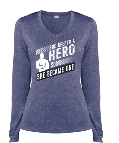 She Became One T Shirt, I Love My Husband T Shirt, Cool Shirt (Ladies LS Heather V-Neck)