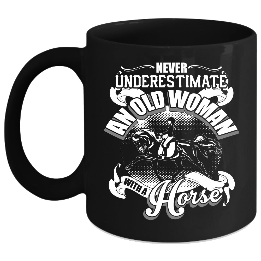 An Old Woman With A Horse Coffee Mug, Cool Old Equestrian Coffee Cup