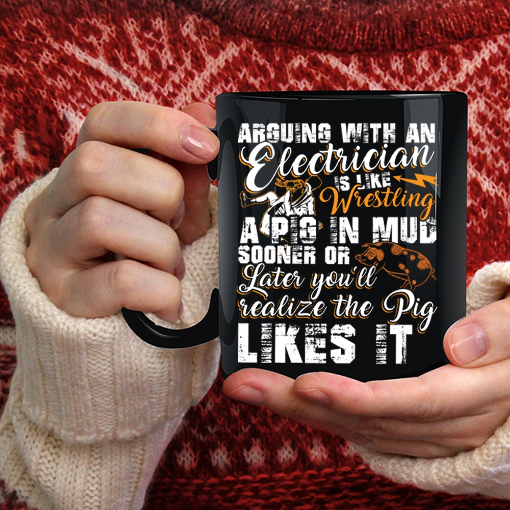 Arguing With An Electrician Coffee Mug, Cool Electrician Coffee Cup