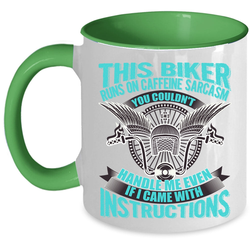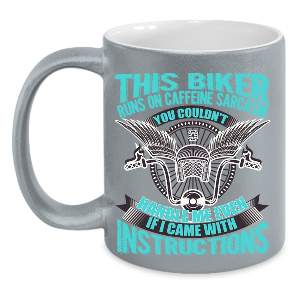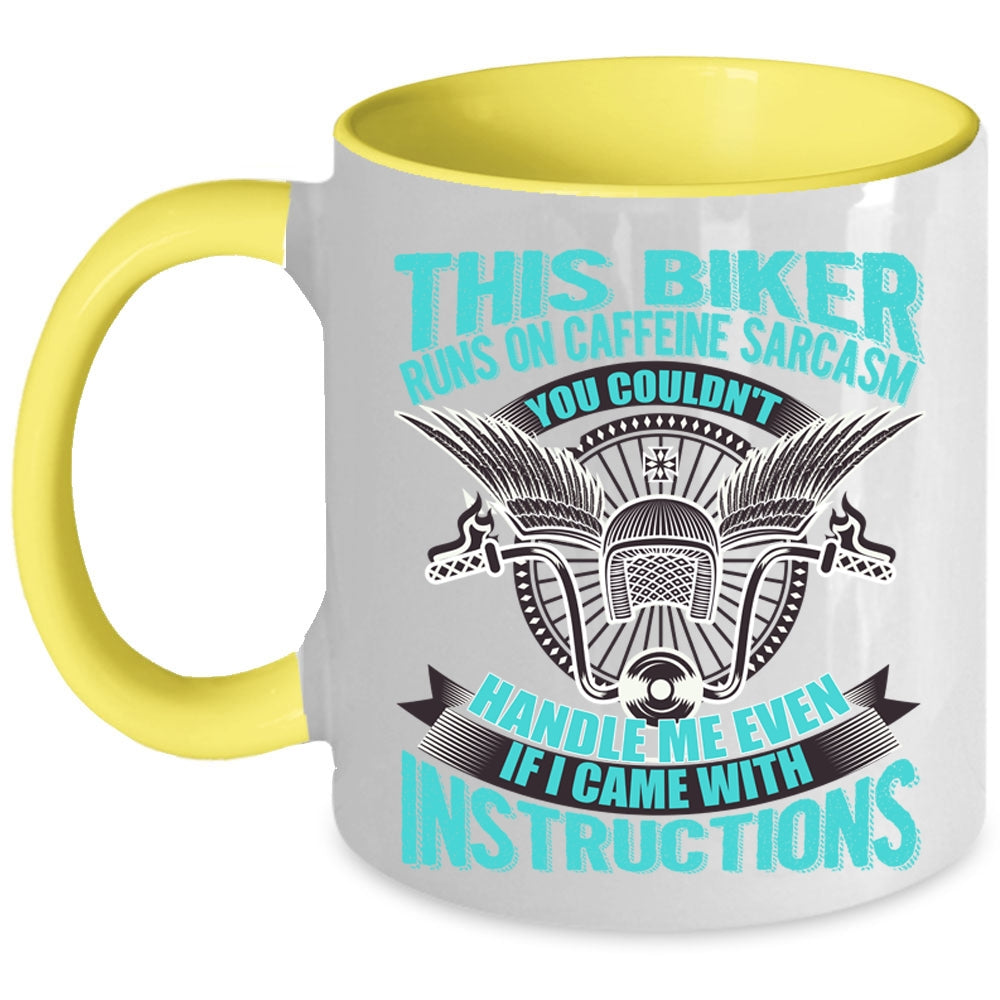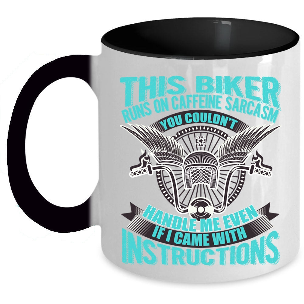 Awesome Bikers Coffee Mug, This Biker Runs On Caffeine Sarcasm Accent Mug
