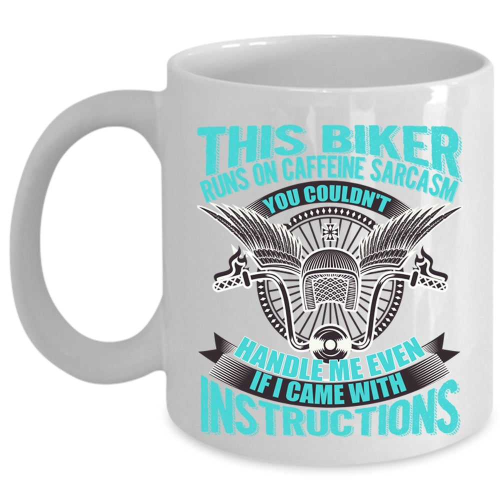 Awesome Bikers Coffee Mug, This Biker Runs On Caffeine Sarcasm Cup