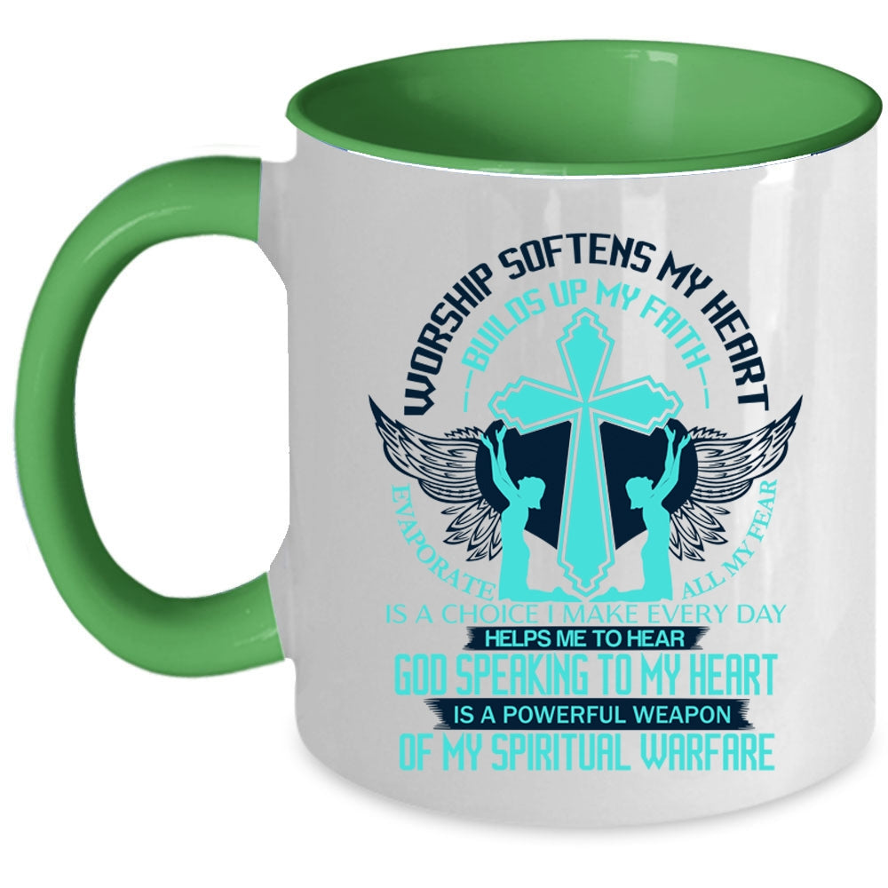 Awesome Coffee Mug, Worship Softens My Heart Accent Mug