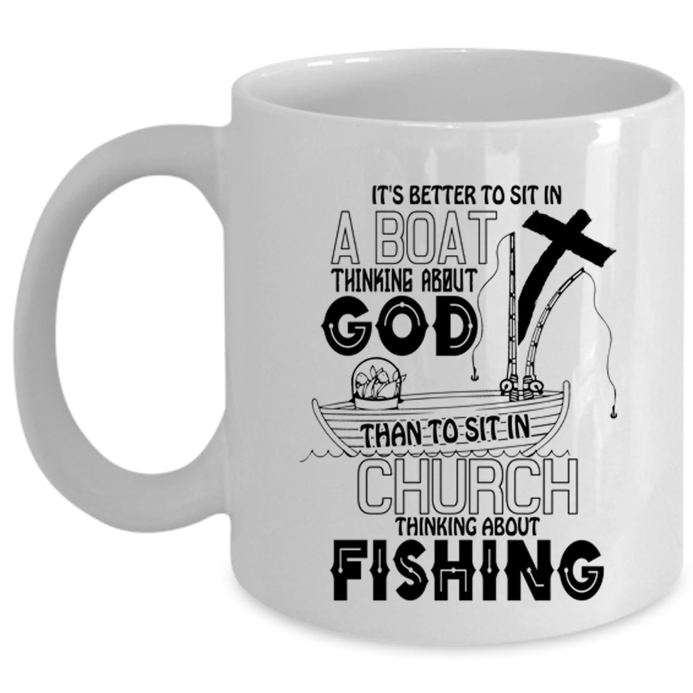 Awesome Fisher Coffee Mug, Sit In Church Thinking About Fishing Cup