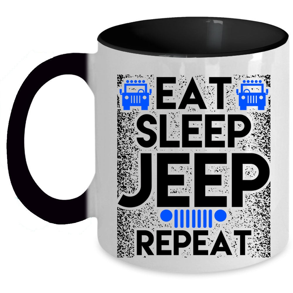 Awesome Jeep Coffee Mug, Eat Sleep Jeep Repeat Accent Mug