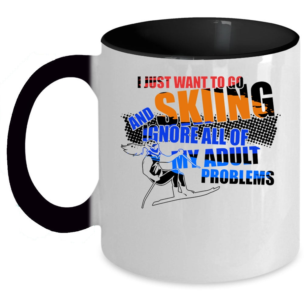 Awesome Skiing Coffee Mug, I Just Want To Go Skiing Accent Mug
