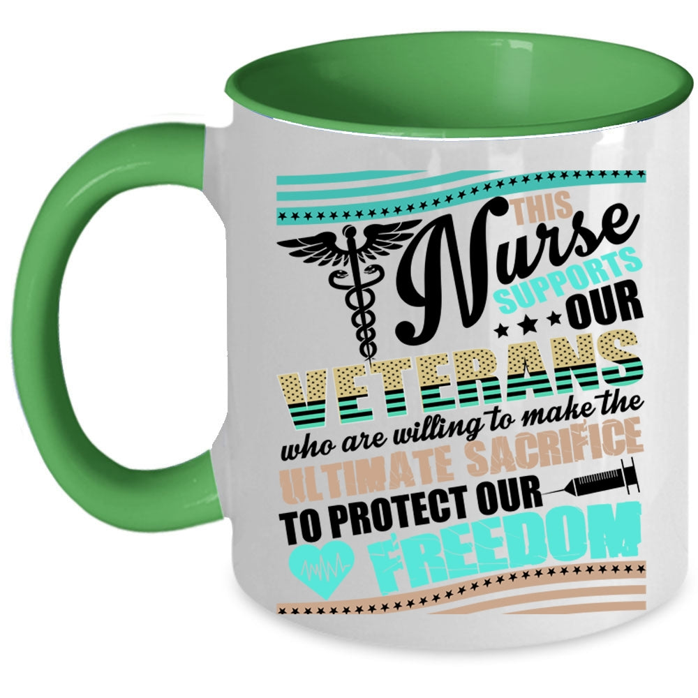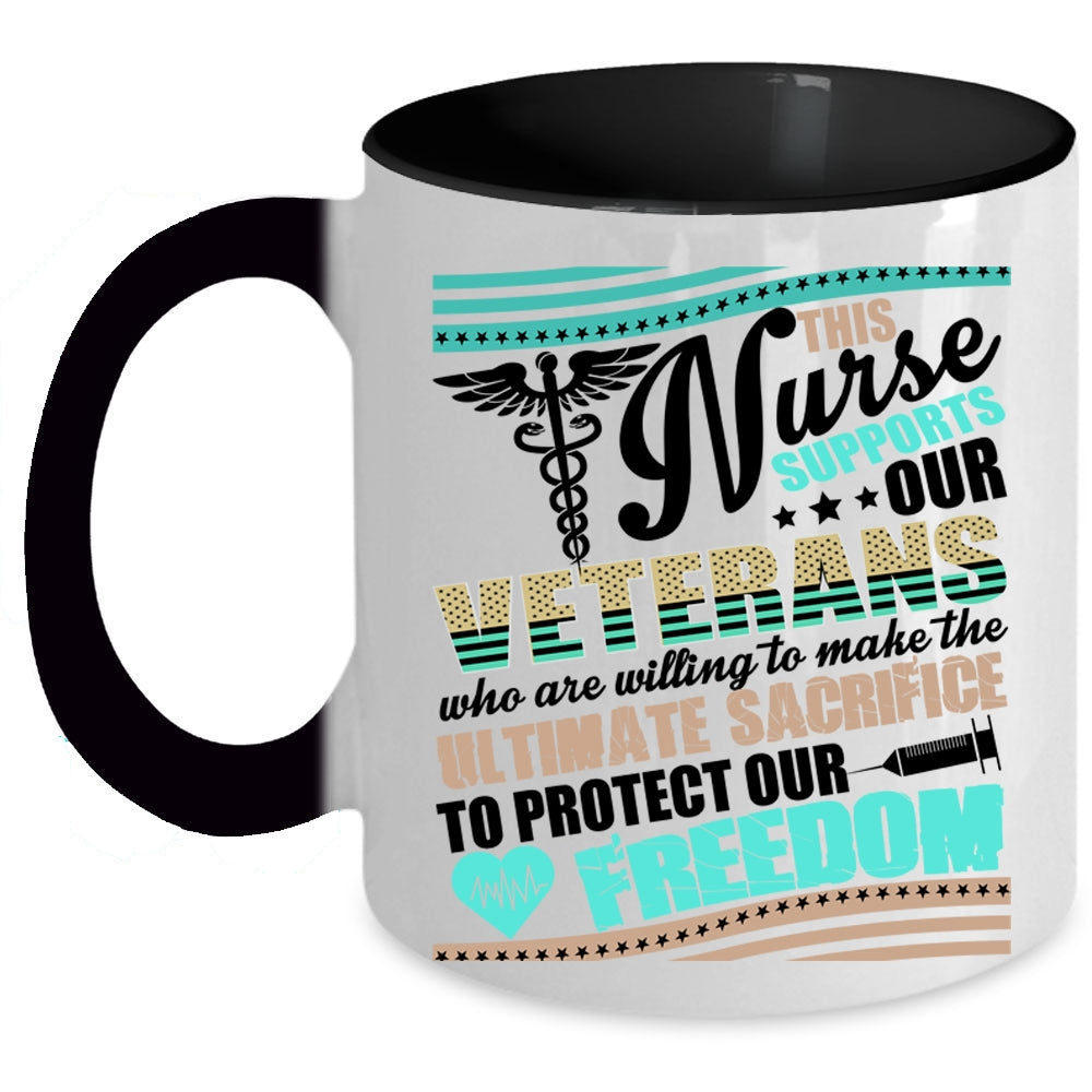 Awesome Veterans Coffee Mug, This Nurse Supports Our Veterans Accent Mug